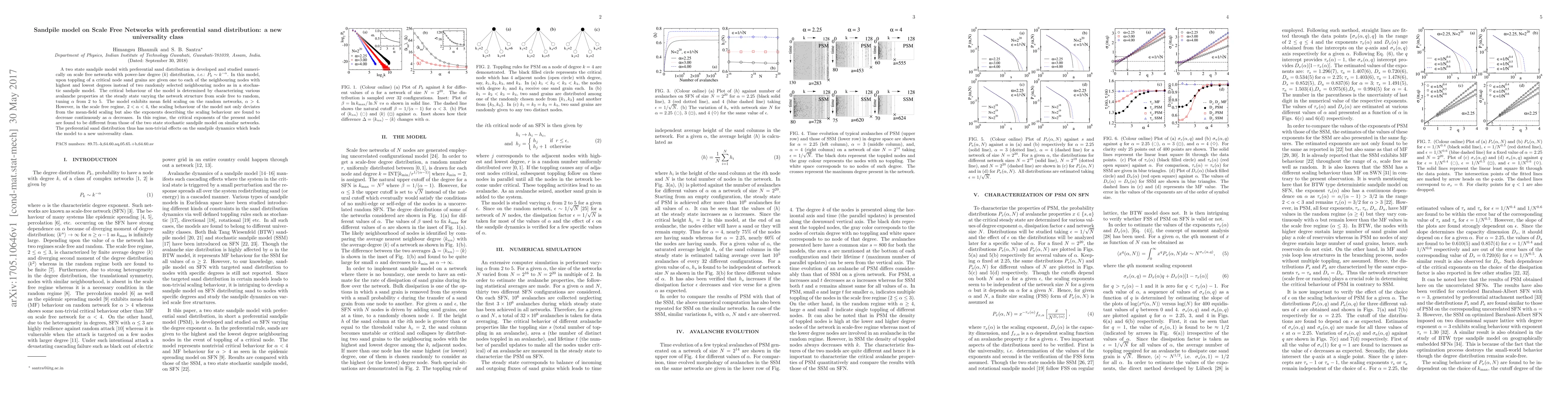 This paper develops a two-state sandpile model on scale-free networks with preferential sand distribution and finds it exhibits a new universality class. The model shows mean-field scaling for random networks but deviates in the scale-free regime, leading to distinct critical exponents and a different scaling behavior as the degree distribution parameter decreases.