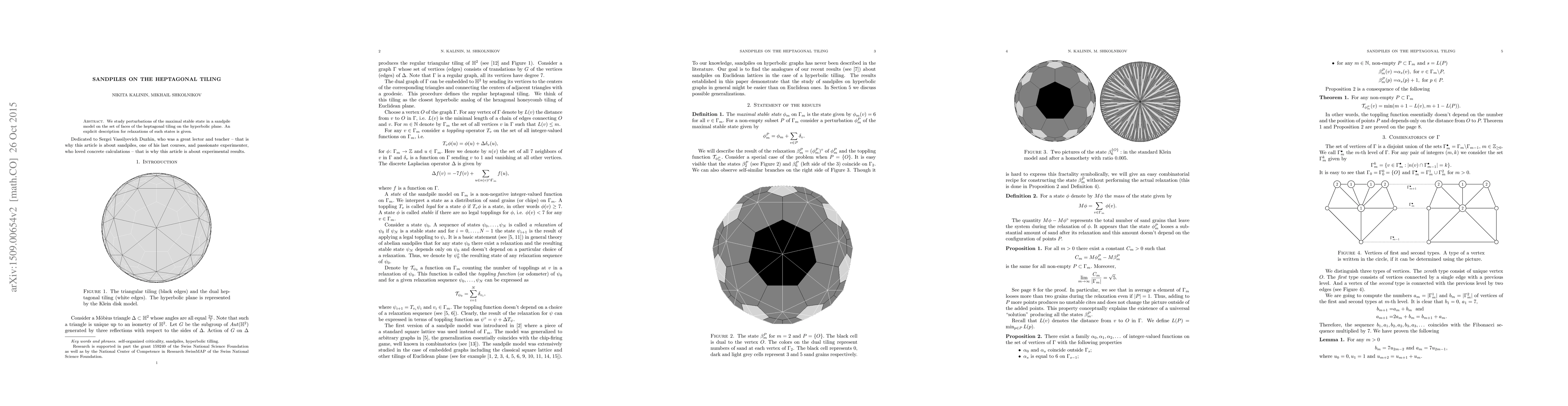 Researchers studied sandpiles on a heptagonal tiling in the hyperbolic plane, finding an explicit description for relaxing states in these systems.