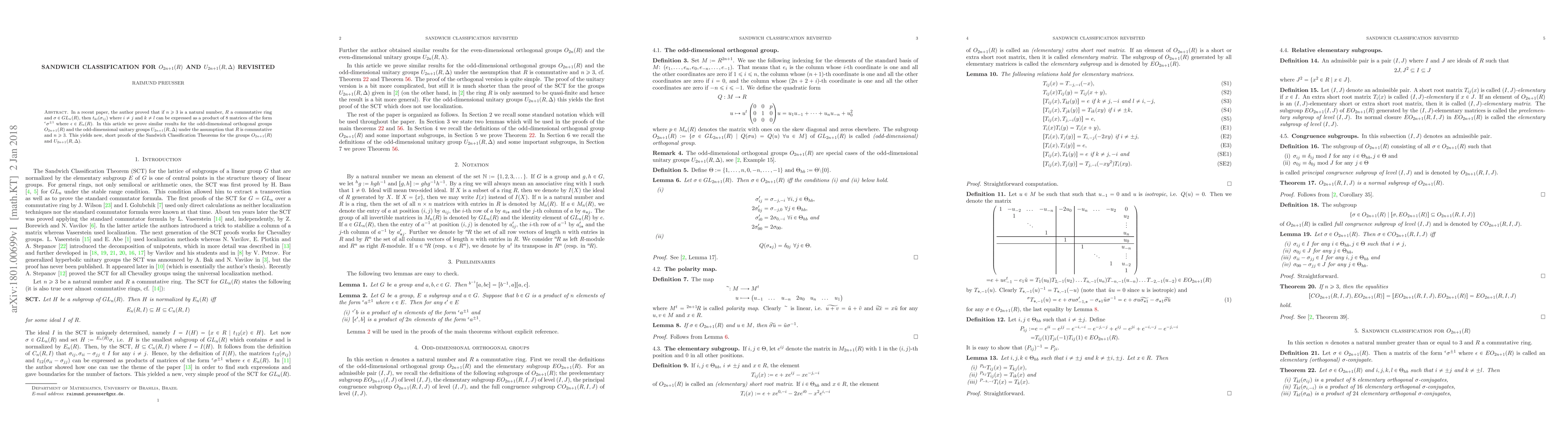 This paper proves new results for the Sandwich Classification of odd-dimensional orthogonal groups $O_{2n+1}(R)$ and unitary groups $U_{2n+1}(R,eta)$, yielding short proofs for key theorems.