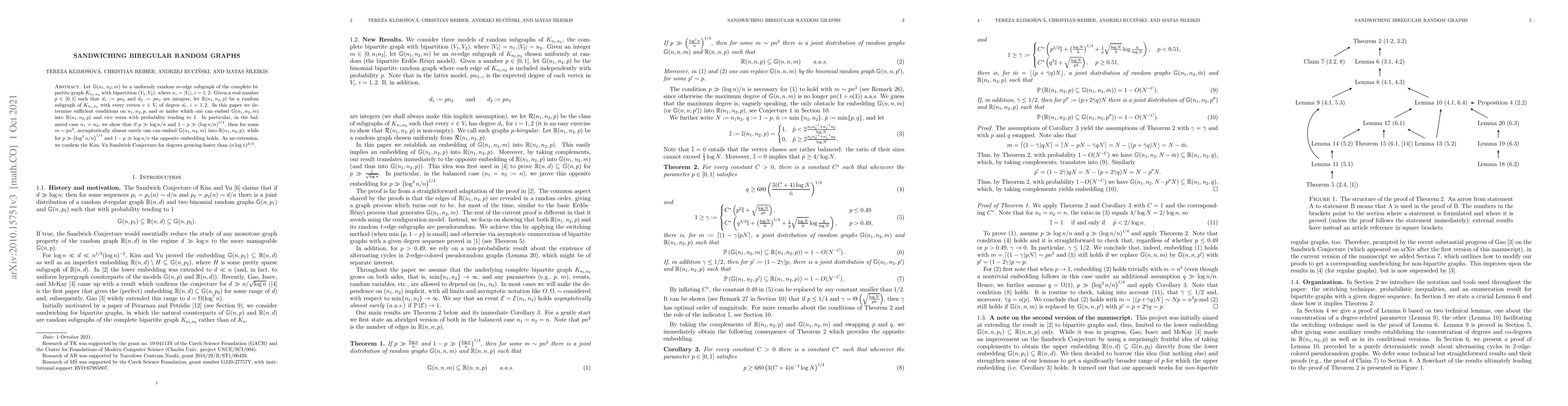 Let $G(n,n,m)$ be a uniformly random $m$-edge subgraph of the complete bipartite graph $K_{n,n}$ with bipartition $(V_1, V_2)$, where $n_i = |V_i|$. Given a real number $p \in [0,1]$ such that $d_1 := pn_2$ and $d_2 := pn_1$ are integers, let $R(n,n,p)$ be a random subgraph of $K_{n,n}$ such that every $v \in V_i$ has degree $d_i$, for $i = 1, 2$. In this paper we determine sufficient conditions on $n_1,n_2,p$, and $m$ under which one can embed $G(n,n,m)$ into $R(n,n,p)$ and vice versa with probability tending to $1$. In particular, in the balanced case $n_1 = n_2$, we show that if $p \gg \log n/n$ and $1 - p \gg \left(\log n/n \right)^{1/4}$, then for some $m \sim pn^2$, asymptotically almost surely one can embed $G(n,n,m)$ into $R(n,n,p)$, while for $p \gg \left(\log^{3} n/n\right)^{1/4}$ and $1-p \gg \log n/n$ we have the opposite embedding. As an extension, we confirm the Kim--Vu Sandwich Conjecture for degrees growing faster than $(n \log n)^{3/4}$.
