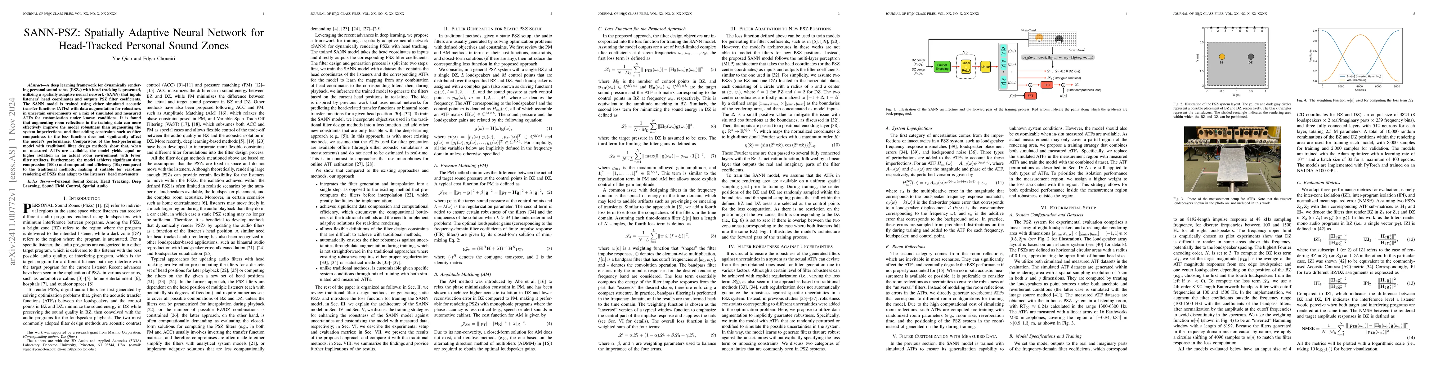 The paper proposes SANN-PSZ, a deep learning framework using a spatially adaptive neural network to dynamically render head-tracked personal sound zones, achieving superior isolation and fewer artifacts compared to traditional methods. The model achieves significant data compression and computational efficiency, suitable for real-time adaptation to listener head movements.