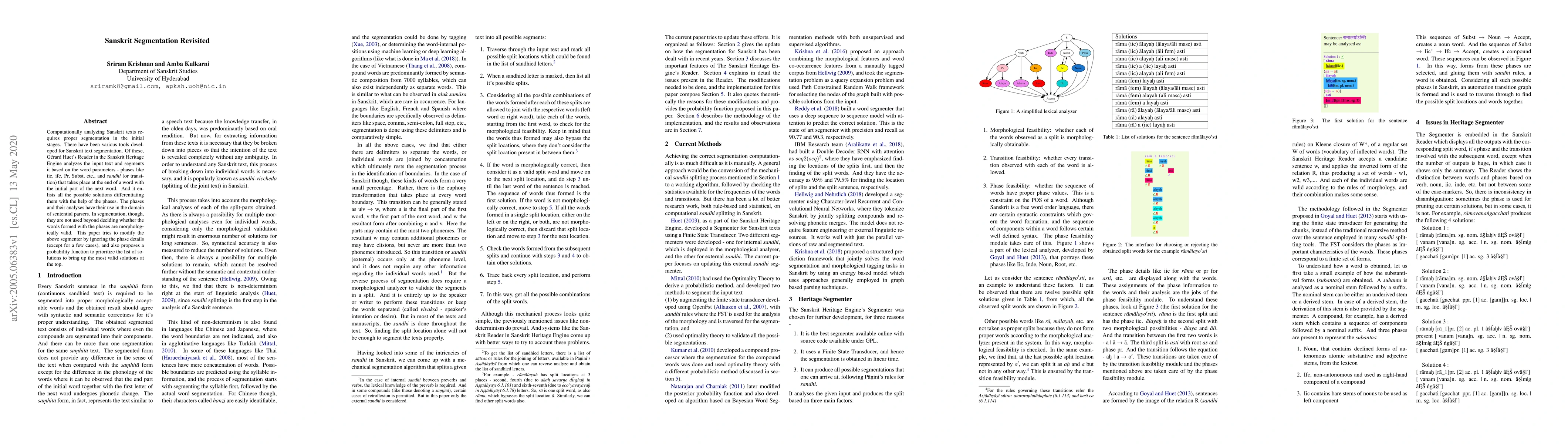 This paper revisits Sanskrit text segmentation, focusing on modifying Gérard Huet's Reader in the Sanskrit Heritage Engine to prioritize valid solutions without relying on phase details, except in specific cases, and introduces a probability function to enhance segmentation accuracy.