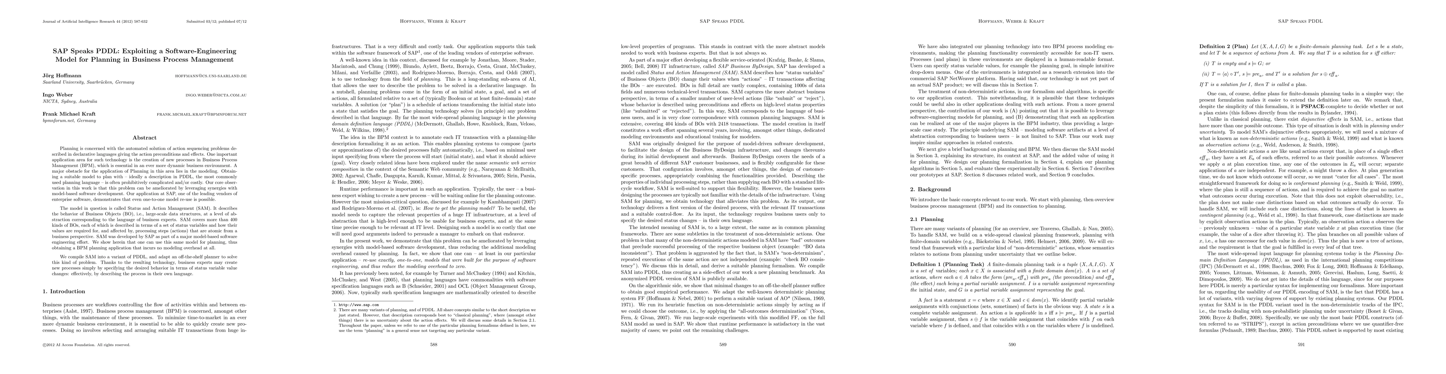 This paper explores leveraging SAP's Status and Action Management (SAM) model for planning in Business Process Management (BPM) by translating it into a variant of PDDL. The approach enables business experts to create new processes without additional modeling overhead, facilitating efficient BPM in dynamic business environments.