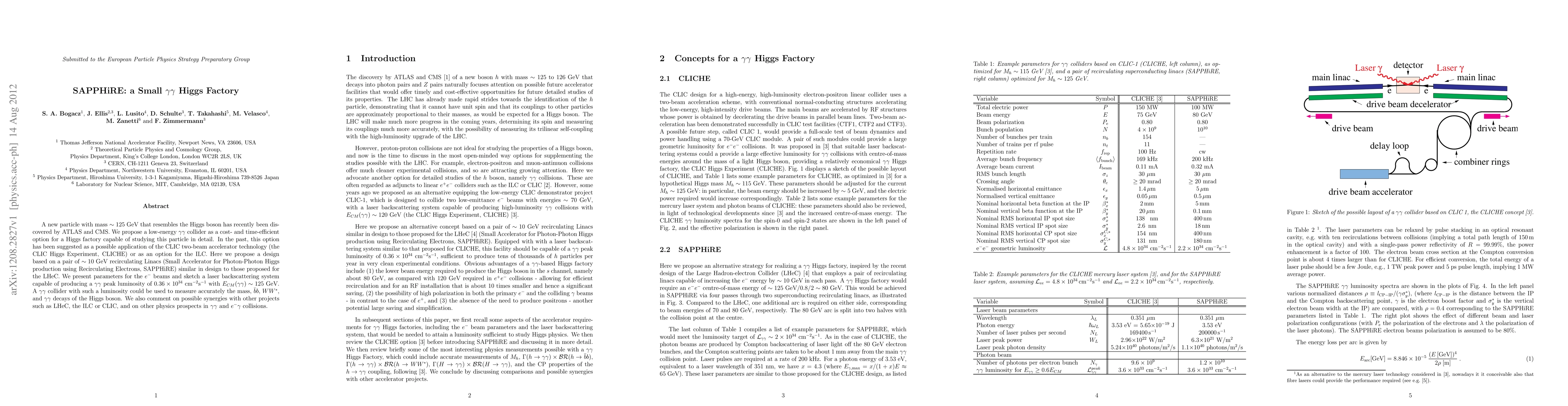 SAPPHiRE proposes a low-cost, time-efficient gamma-gamma collider using recirculating linacs to study the recently discovered Higgs boson at ~125 GeV, aiming for a peak luminosity of 0.36 × 10^34/cm^2/s to accurately measure its properties and explore synergies with other particle physics projects.