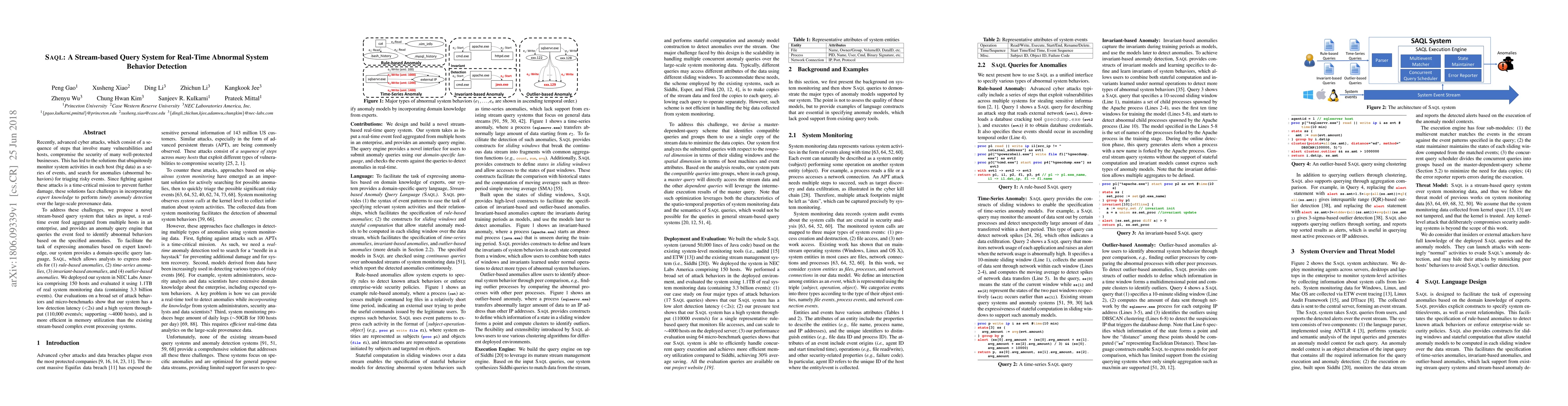 Recently, advanced cyber attacks, which consist of a sequence of steps that involve many vulnerabilities and hosts, compromise the security of many well-protected businesses. This has led to the solutions that ubiquitously monitor system activities in each host (big data) as a series of events, and search for anomalies (abnormal behaviors) for triaging risky events. Since fighting against these attacks is a time-critical mission to prevent further damage, these solutions face challenges in incorporating expert knowledge to perform timely anomaly detection over the large-scale provenance data. To address these challenges, we propose a novel stream-based query system that takes as input, a real-time event feed aggregated from multiple hosts in an enterprise, and provides an anomaly query engine that queries the event feed to identify abnormal behaviors based on the specified anomalies. To facilitate the task of expressing anomalies based on expert knowledge, our system provides a domain-specific query language, SAQL, which allows analysts to express models for (1) rule-based anomalies, (2) time-series anomalies, (3) invariant-based anomalies, and (4) outlier-based anomalies. We deployed our system in NEC Labs America comprising 150 hosts and evaluated it using 1.1TB of real system monitoring data (containing 3.3 billion events). Our evaluations on a broad set of attack behaviors and micro-benchmarks show that our system has a low detection latency (<2s) and a high system throughput (110,000 events/s; supporting ~4000 hosts), and is more efficient in memory utilization than the existing stream-based complex event processing systems.