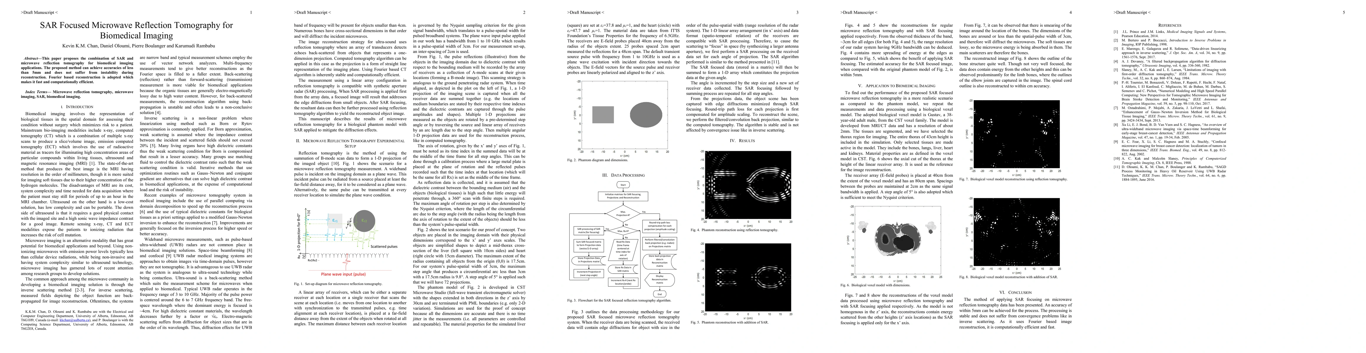 This paper proposes a novel biomedical imaging technique combining SAR and microwave reflection tomography, achieving sub-5mm accuracy and stability, utilizing fast Fourier-based reconstruction for computational efficiency.