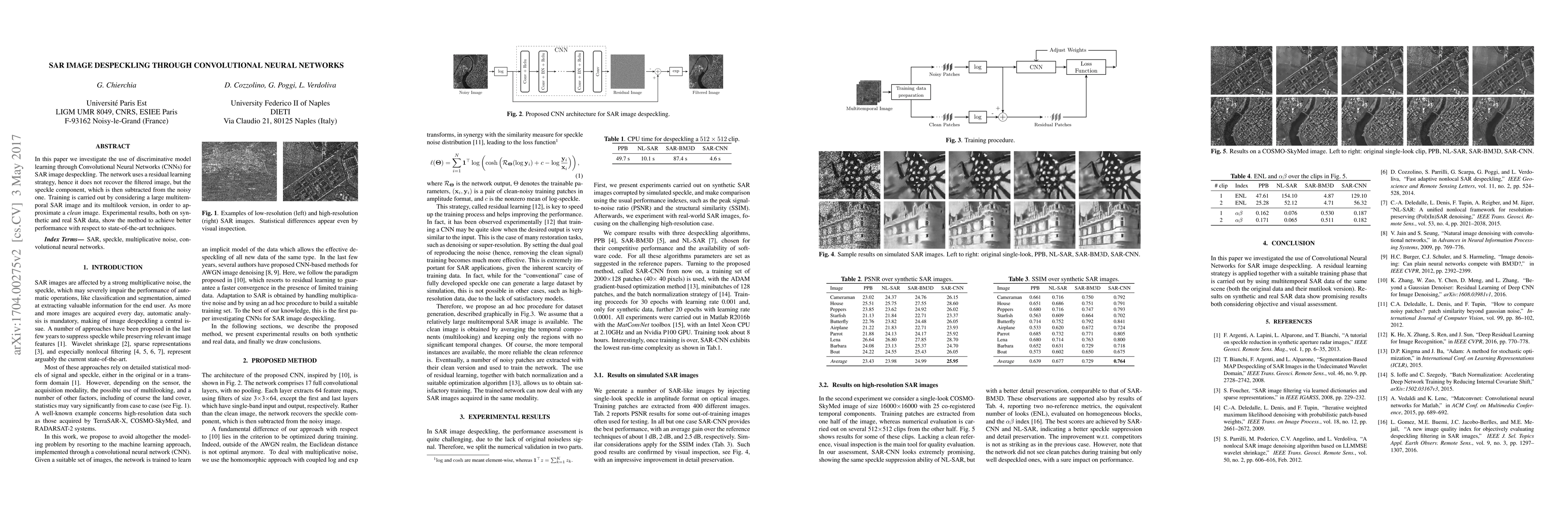 This paper explores the application of convolutional neural networks (CNNs) with a residual learning strategy for despeckling SAR images, achieving superior performance compared to existing methods, as demonstrated through both synthetic and real SAR data.