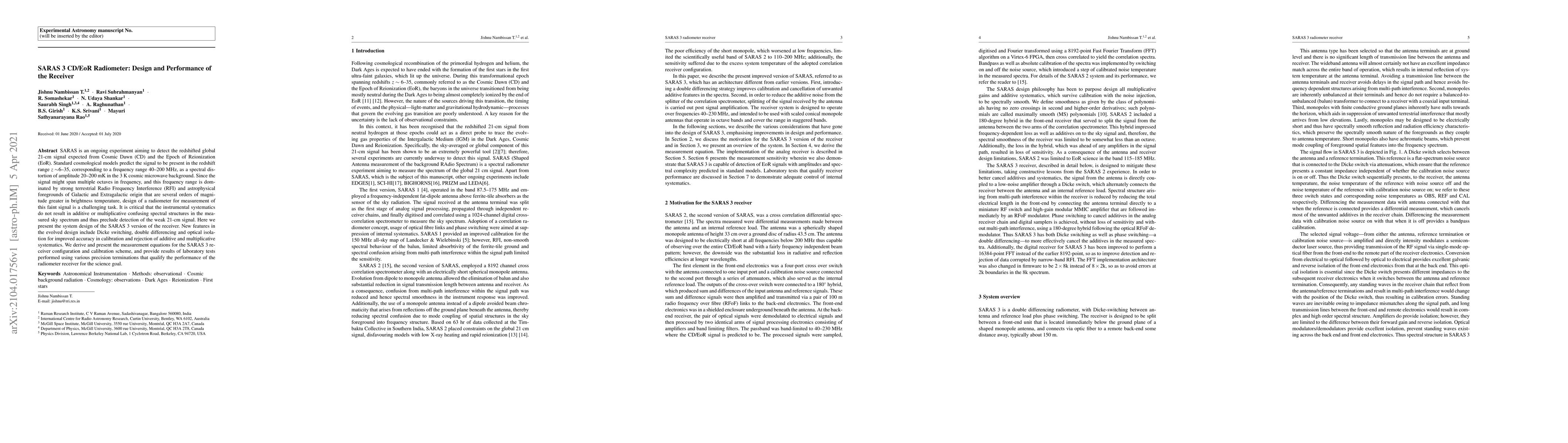 The SARAS 3 CD/EoR Radiometer aims to detect faint redshifted 21-cm signals from the Cosmic Dawn and Epoch of Reionization. The new design features include Dicke switching, double differencing, and optical isolation to enhance calibration and reduce systematic errors, ensuring accurate detection of the weak signal amidst strong terrestrial and astrophysical interference.