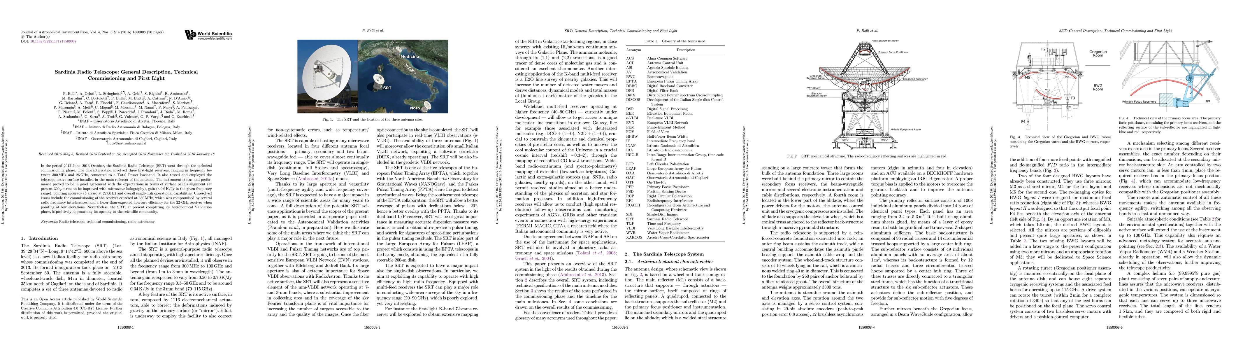 The Sardinia Radio Telescope (SRT) successfully completed its technical commissioning phase, demonstrating good performance in alignment, gain, and pointing accuracy. Despite some unresolved issues, the SRT is nearing its full operational readiness for scientific use.