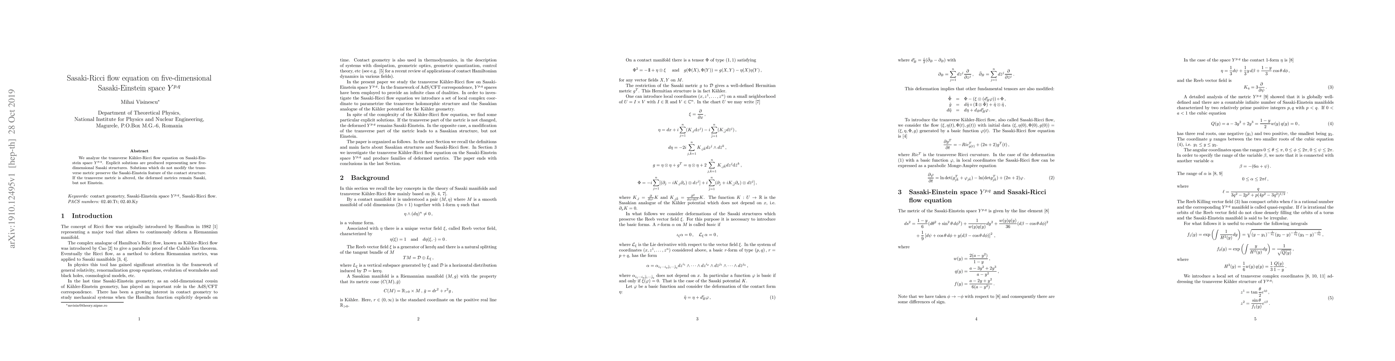 We analyze the transverse K\"{a}hler-Ricci flow equation on Sasaki-Ein\-stein space $Y^{p,q}$. Explicit solutions are produced representing new five-dimensional Sasaki structures. Solutions which do not modify the transverse metric preserve the Sasaki-Einstein feature of the contact structure. If the transverse metric is altered, the deformed metrics remain Sasaki, but not Einstein.