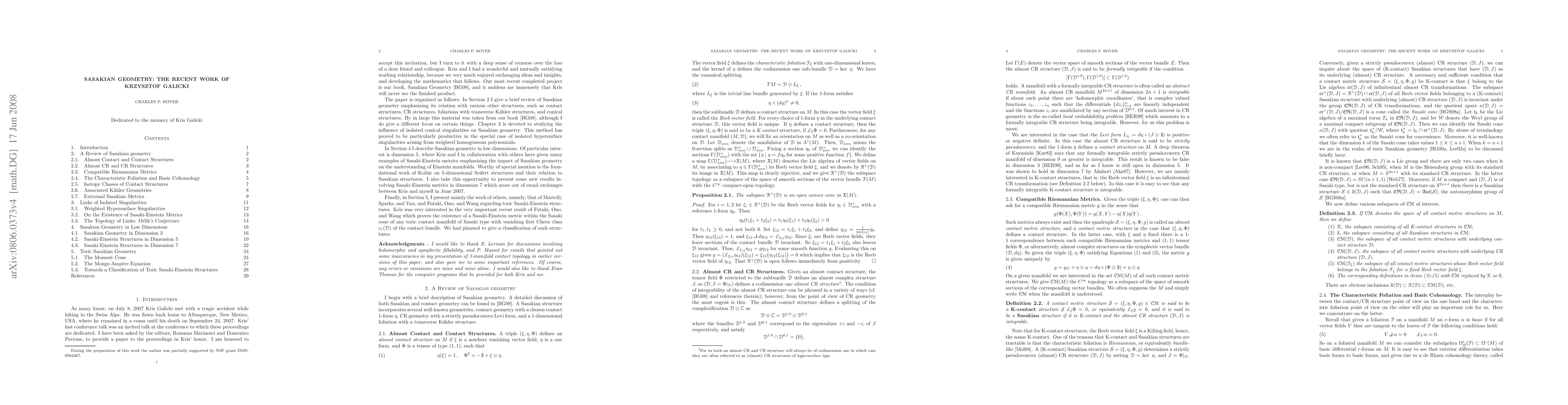 This is a mainly expository article honoring my recently deceased friend and collaborator Krzysztof Galicki who died after a tragic hiking accident. I give a review of our recent work in Sasakian geometry. A few new results are also presented.