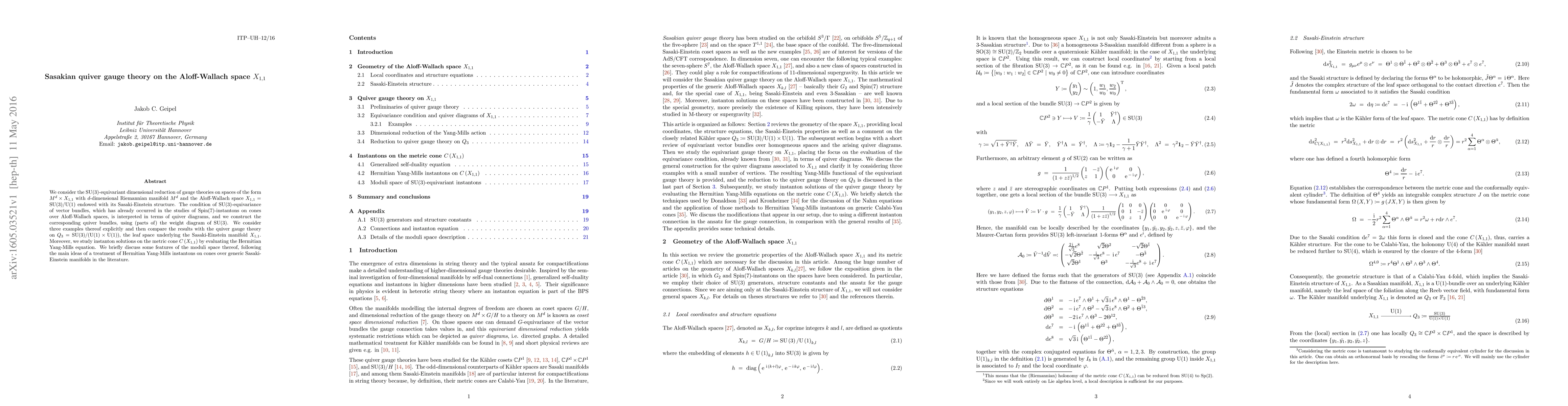 This paper studies SU(3)-equivariant dimensional reductions of gauge theories on spaces $M^d \times X_{1,1}$, interpreting SU(3)-equivariance in terms of quiver diagrams to construct quiver bundles. It evaluates instanton solutions on the metric cone $C(X_{1,1})$ by addressing the Hermitian Yang-Mills equation and discusses features of the resulting moduli space.