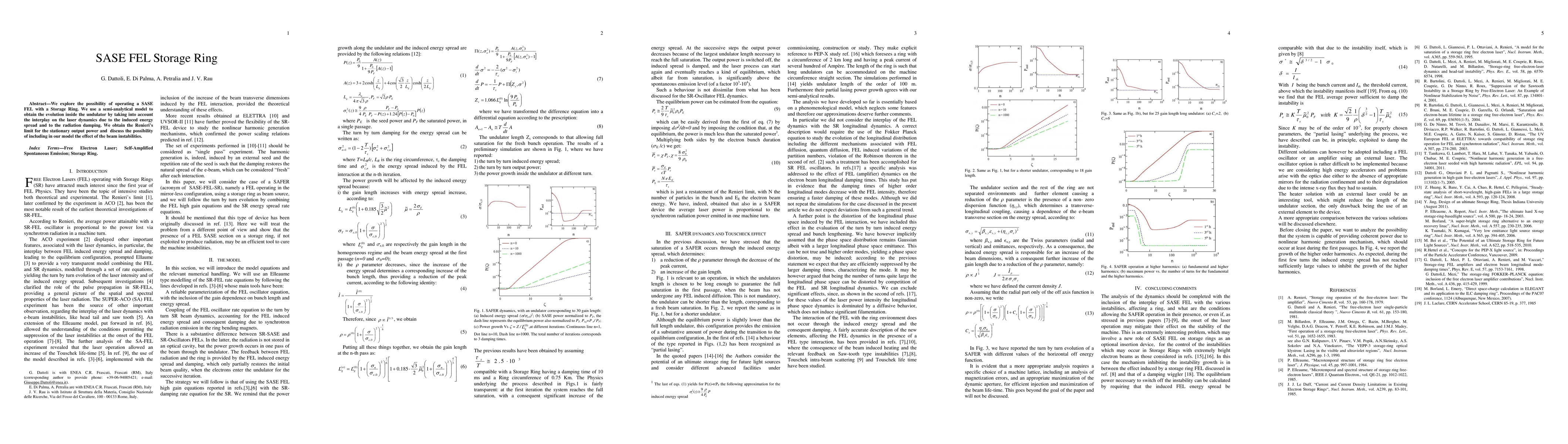 This paper investigates the feasibility of a Self-Amplified Spontaneous Emission (SASE) Free Electron Laser (FEL) operating within a Storage Ring, utilizing a semi-analytical model to analyze the dynamics and energy spread. The study derives Renieri's limit for the maximum stationary output power and considers the impact of beam instabilities.