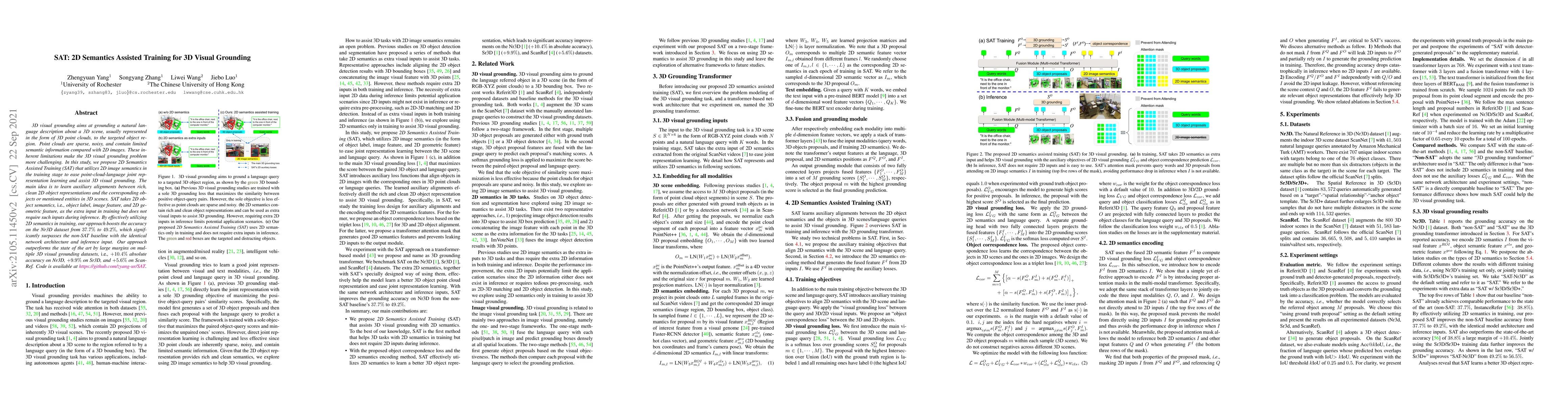 This paper proposes 2D Semantics Assisted Training (SAT) to enhance 3D visual grounding by leveraging 2D image semantics during training. The approach significantly improves accuracy by aligning 2D object representations with 3D scenes, achieving a notable boost in performance on the Nr3D dataset and outperforming state-of-the-art methods on multiple 3D visual grounding datasets.