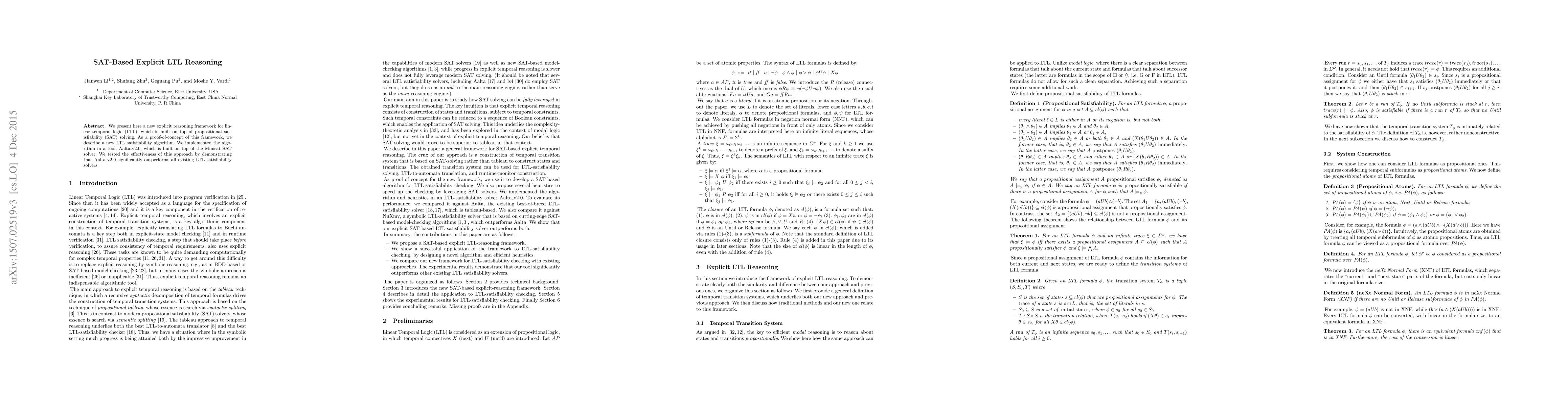 This paper introduces an explicit reasoning framework for linear temporal logic (LTL) based on SAT solving, exemplified by the new LTL satisfiability tool Aalta\_v2.0. The framework outperforms existing LTL solvers and extends to assertional LTL with enhanced performance using the Z3 SMT solver.