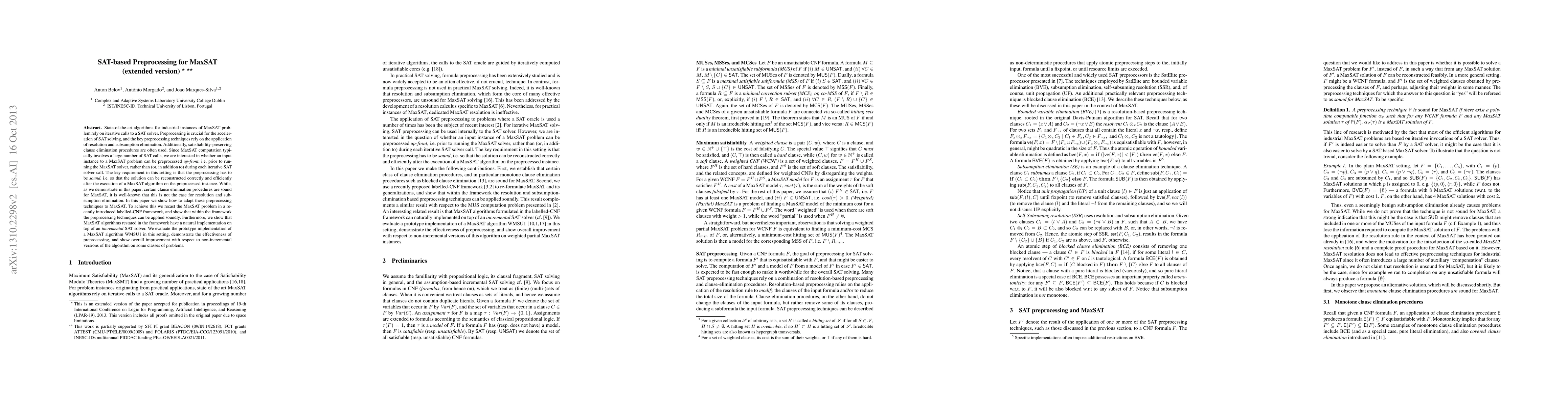 This paper explores preprocessing techniques for the MaxSAT problem using a labelled-CNF framework, adapting resolution and subsumption elimination to ensure soundness. It demonstrates improved performance of a MaxSAT algorithm, WMSU1, through preprocessed instances compared to non-incremental versions.
