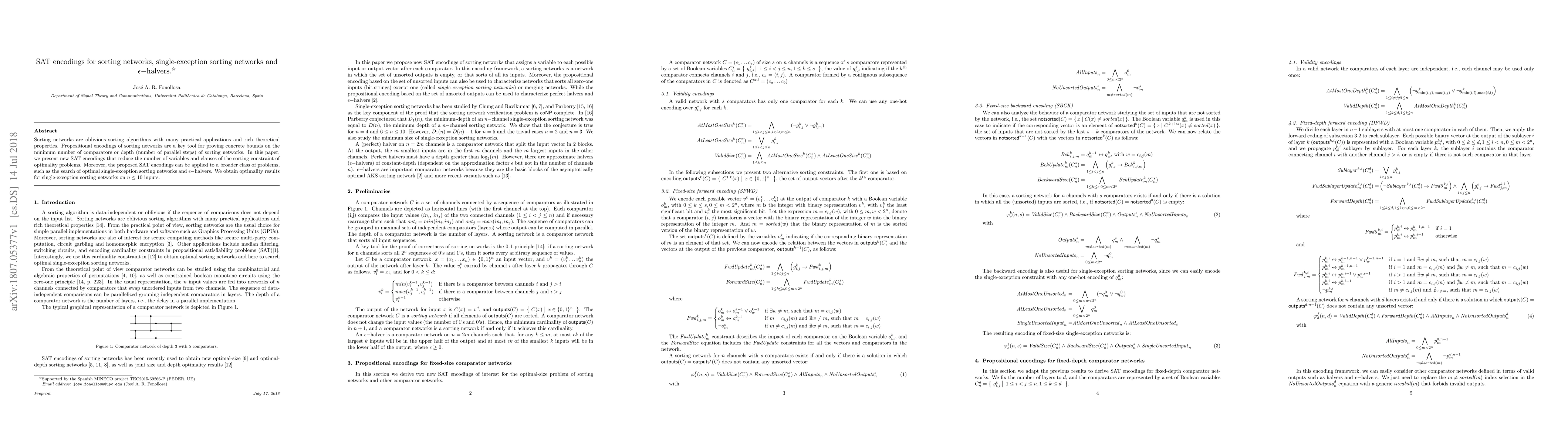 This paper introduces improved SAT encodings to reduce the complexity of determining optimal sorting networks, focusing on minimizing the number of comparators and depth. The new encodings extend to single-exception sorting networks and ε-halvers, achieving optimality results for these networks with up to 10 inputs.