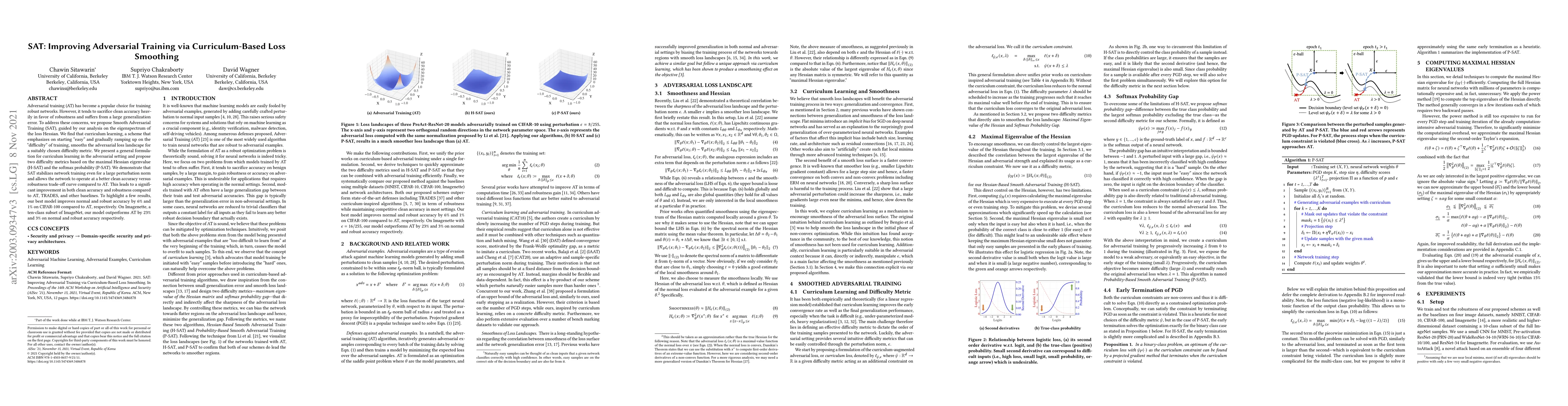 Adversarial training (AT) has become a popular choice for training robust networks. However, it tends to sacrifice clean accuracy heavily in favor of robustness and suffers from a large generalization error. To address these concerns, we propose Smooth Adversarial Training (SAT), guided by our analysis on the eigenspectrum of the loss Hessian. We find that curriculum learning, a scheme that emphasizes on starting "easy" and gradually ramping up on the "difficulty" of training, smooths the adversarial loss landscape for a suitably chosen difficulty metric. We present a general formulation for curriculum learning in the adversarial setting and propose two difficulty metrics based on the maximal Hessian eigenvalue (H-SAT) and the softmax probability (P-SA). We demonstrate that SAT stabilizes network training even for a large perturbation norm and allows the network to operate at a better clean accuracy versus robustness trade-off curve compared to AT. This leads to a significant improvement in both clean accuracy and robustness compared to AT, TRADES, and other baselines. To highlight a few results, our best model improves normal and robust accuracy by 6% and 1% on CIFAR-100 compared to AT, respectively. On Imagenette, a ten-class subset of ImageNet, our model outperforms AT by 23% and 3% on normal and robust accuracy respectively.