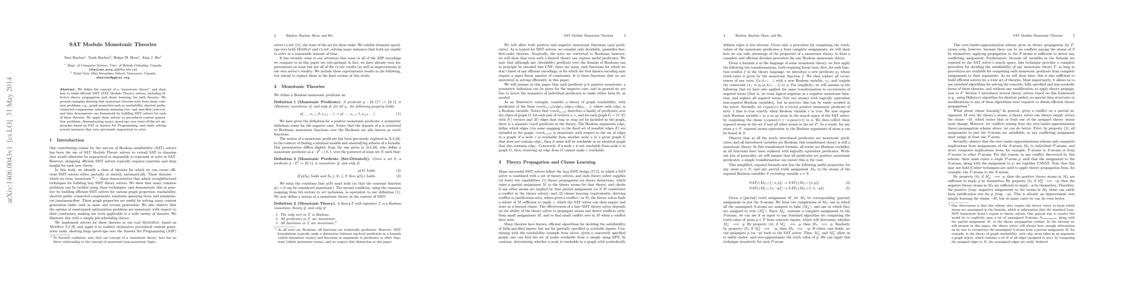 This paper introduces monotonic theories and presents efficient SMT solvers for them, incorporating effective propagation and clause learning. The authors demonstrate the applicability of their framework to various graph-related problems, achieving significant speed-ups over existing SAT and Answer Set Programming methods in procedural content generation.