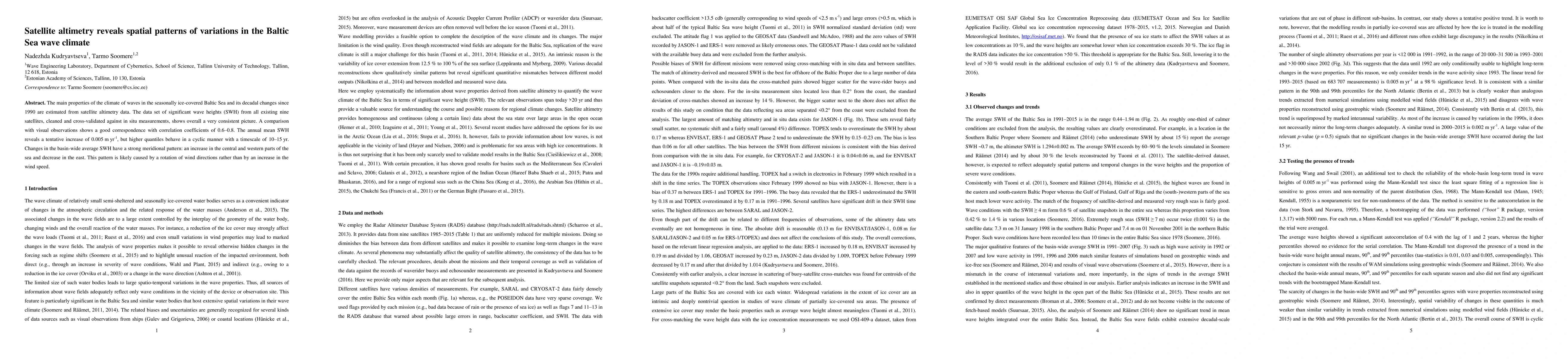 This study uses satellite altimetry data to analyze wave climate variations in the Baltic Sea since 1990, revealing a tentative annual increase in significant wave heights and a meridional pattern of changes likely due to wind direction shifts rather than speed increases. The findings correlate well with visual observations.