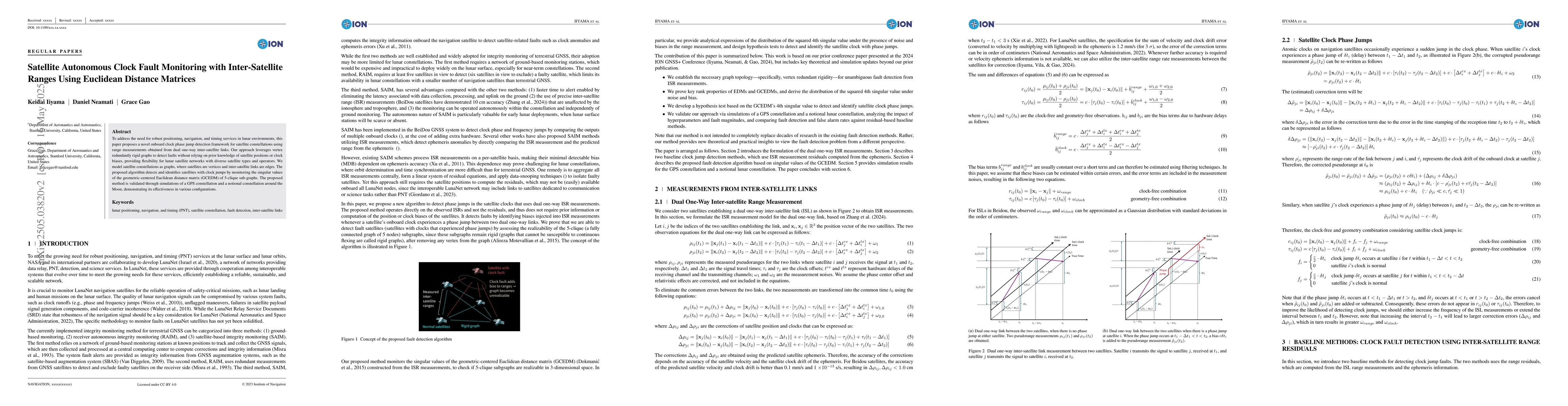 The paper introduces a new clock phase jump detection algorithm based on Euclidean Distance Matrices (EDMs) derived from Inter-Satellite Range (ISR) measurements, which operates autonomously within the constellation without requiring prior knowledge of satellite positions or clock biases.