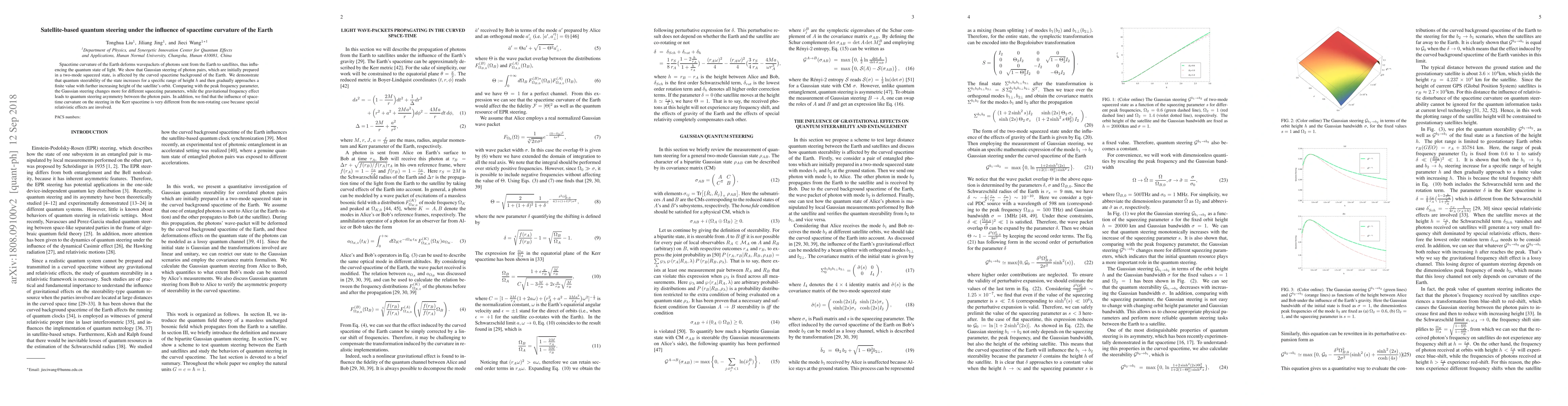 This paper investigates how Earth's spacetime curvature affects the quantum steering of photon pairs sent to satellites, demonstrating that steerability increases with satellite height up to a certain limit. The study highlights differences in steering under Kerr spacetime compared to non-rotating cases, revealing gravitational influence on quantum state asymmetry.