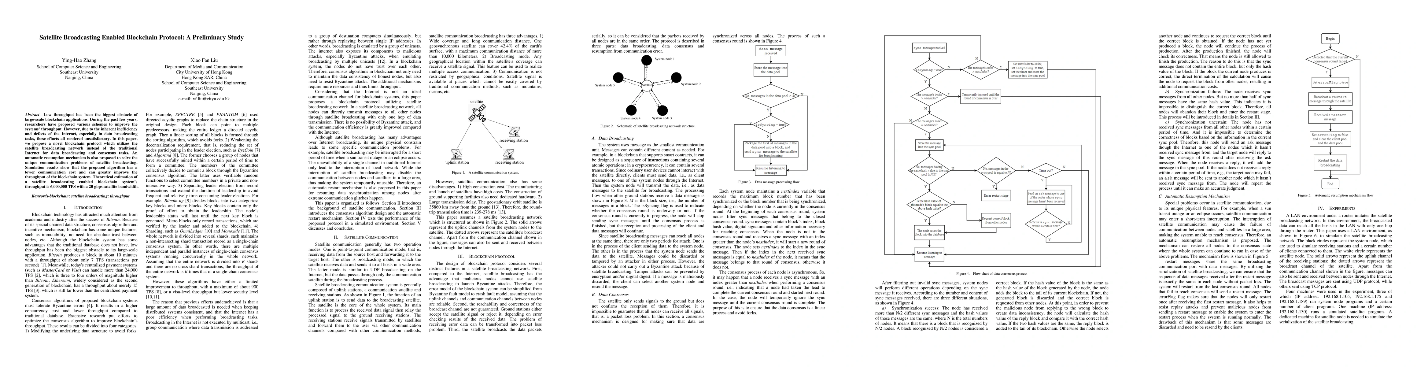 A blockchain protocol was proposed which utilizes satellite broadcasting as the blockchain system's communication channel.