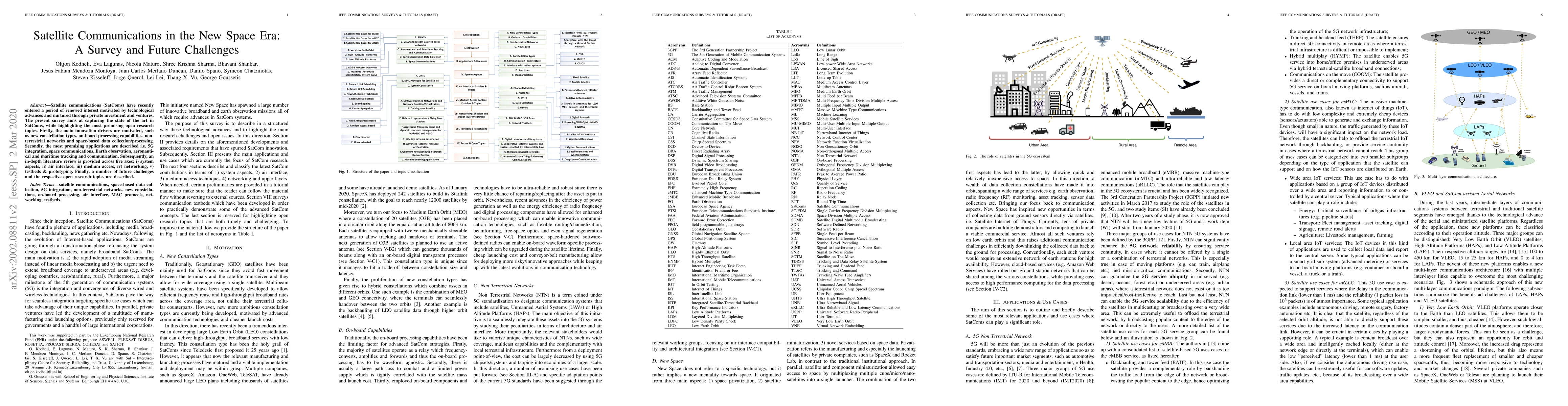 This paper surveys the current state of satellite communications, emphasizing technological advances and promising applications like 5G integration and Earth observation. It also outlines future challenges and open research areas across system aspects, air interface, medium access, networking, and testbeds.