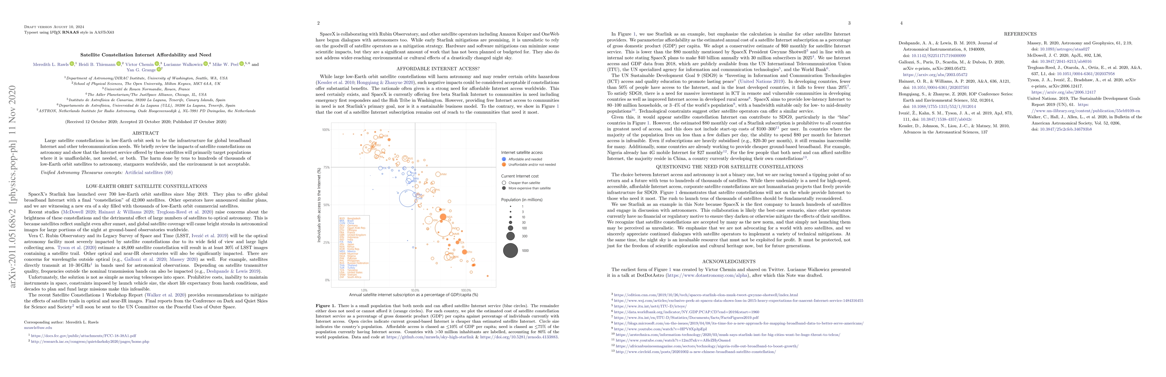 Large satellite constellations in low-Earth orbit seek to be the infrastructure for global broadband Internet and other telecommunication needs. We briefly review the impacts of satellite constellations on astronomy and show that the Internet service offered by these satellites will primarily target populations where it is unaffordable, not needed, or both. The harm done by tens to hundreds of thousands of low-Earth orbit satellites to astronomy, stargazers worldwide, and the environment is not acceptable.