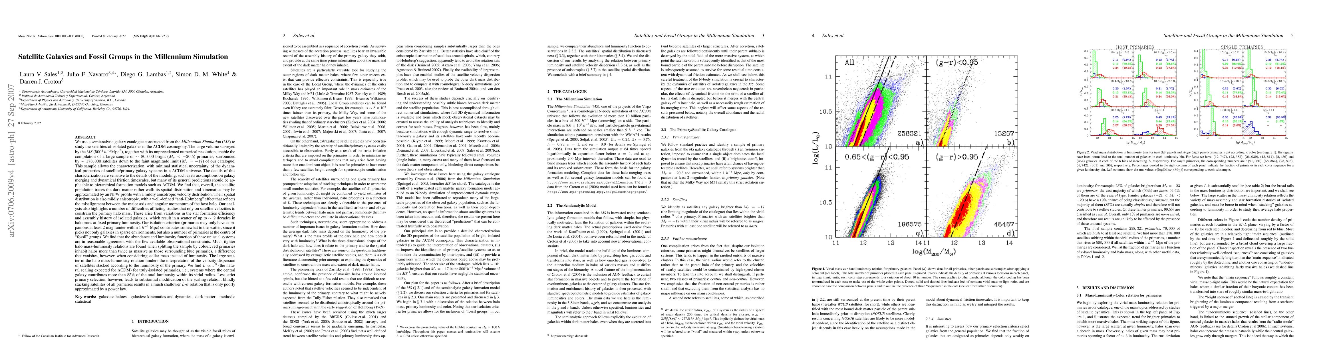 Researchers studied satellite galaxies in the Millennium Simulation to understand their properties and how they relate to dark matter. They found that satellites trace dark matter well and exhibit anisotropic distributions, with some systems appearing in 'fossil' groups that match observational constraints.