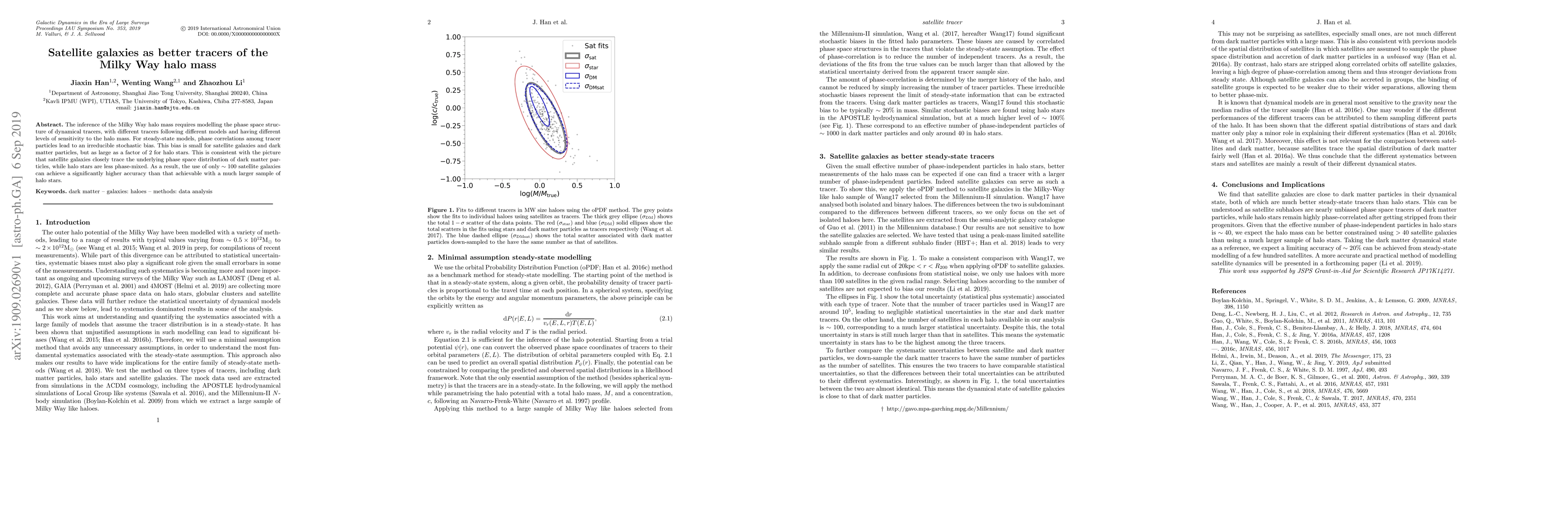 This paper argues that satellite galaxies provide a more accurate tracer for estimating the Milky Way halo mass compared to halo stars due to their closer alignment with the phase space distribution of dark matter, resulting in a smaller bias and higher accuracy despite their smaller sample size.