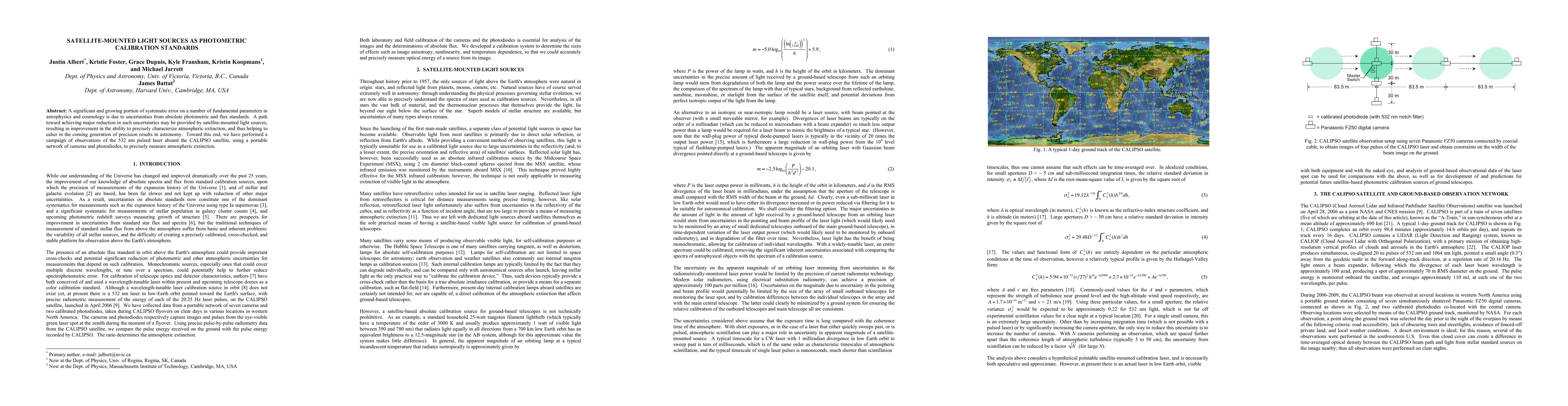 This paper investigates the use of satellite-mounted light sources, specifically the 532 nm pulsed laser on the CALIPSO satellite, to reduce systematic errors in astrophysical and cosmological measurements by improving the characterization of atmospheric extinction. Observations using a network of portable cameras and photodiodes aim to achieve more precise photometric calibration standards.