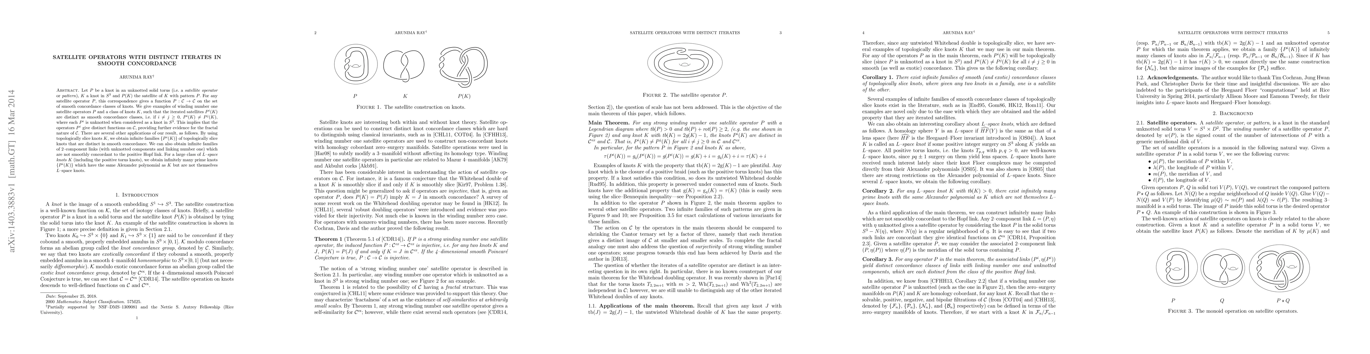 This paper studies satellite operators P in knot theory, demonstrating that for certain winding number one patterns P and knots K, the iterated satellite knots P^i(K) remain distinct in smooth concordance classes. This indicates a fractal nature in the set of concordance classes and allows the construction of infinite families of topologically distinct knots and links.