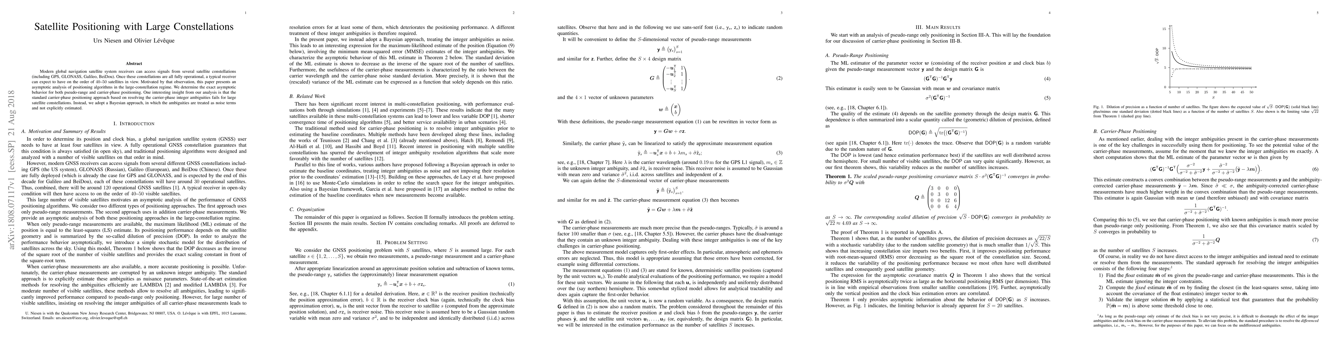 The paper presents an asymptotic analysis of positioning algorithms for large satellite constellations, focusing on pseudo-range and carrier-phase positioning.