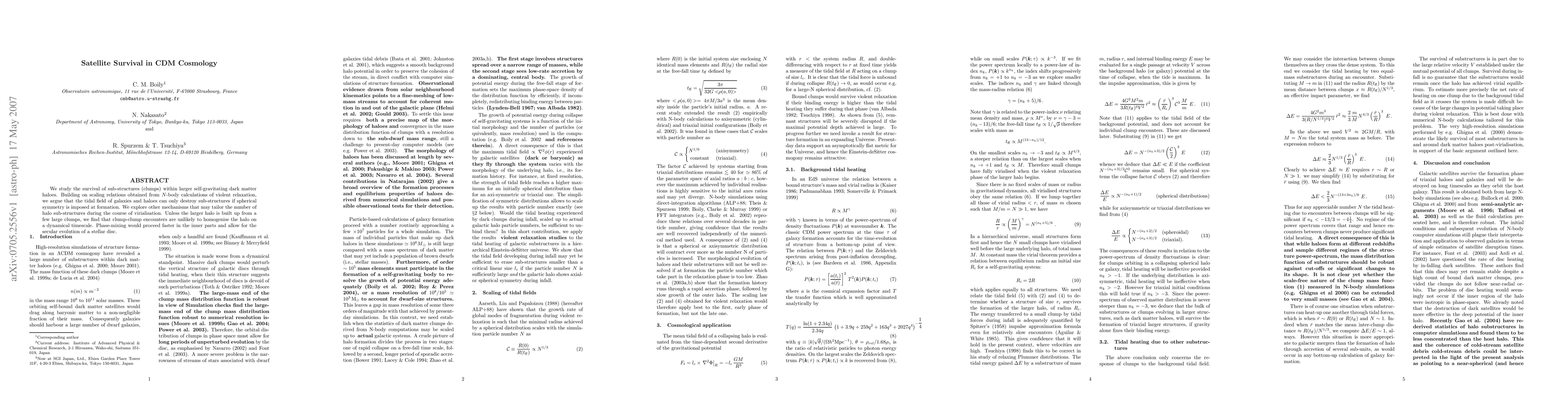 We study the survival of substructures (clumps) within larger self-gravitating dark matter halos. Building on scaling relations obtained from N-body calculations of violent relaxation, we argue that the tidal field of galaxies and halos can only destroy substructures if spherical symmetry is imposed at formation. We explore other mechanisms that may tailor the number of halo substructures during the course of virialization. Unless the larger halo is built up from a few large clumps, we find that clump-clump encounters are unlikely to homogenize the halo on a dynamical timescale. Phase mixing would proceed faster in the inner parts and allow for the secular evolution of a stellar disk.