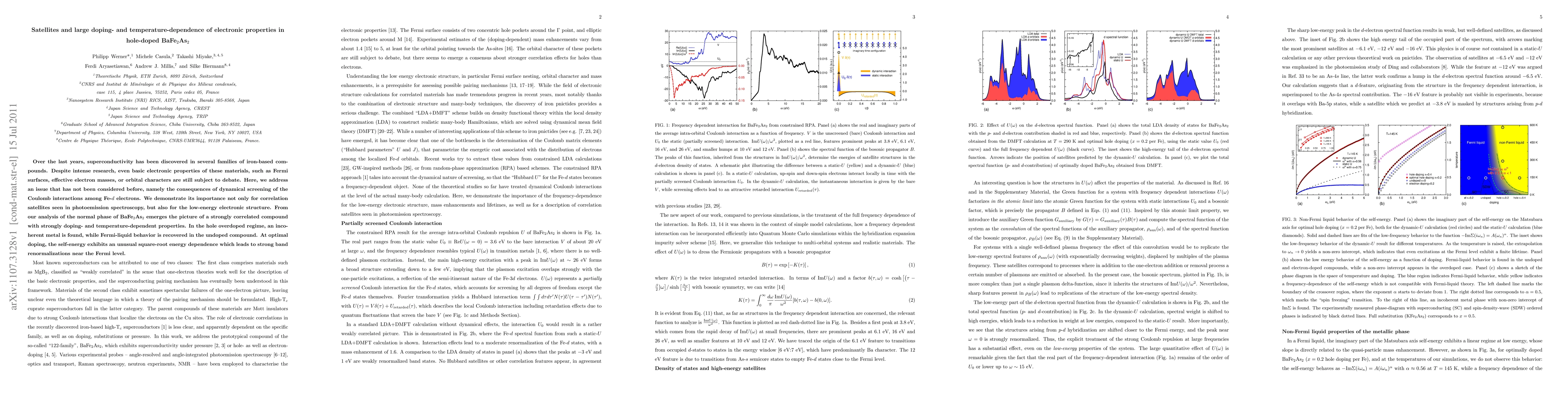 Over the last years, superconductivity has been discovered in several families of iron-based compounds. Despite intense research, even basic electronic properties of these materials, such as Fermi surfaces, effective electron masses, or orbital characters are still subject to debate. Here, we address an issue that has not been considered before, namely the consequences of dynamical screening of the Coulomb interactions among Fe-d electrons. We demonstrate its importance not only for correlation satellites seen in photoemission spectroscopy, but also for the low-energy electronic structure. From our analysis of the normal phase of BaFe2As2 emerges the picture of a strongly correlated compound with strongly doping- and temperature-dependent properties. In the hole overdoped regime, an incoherent metal is found, while Fermi-liquid behavior is recovered in the undoped compound. At optimal doping, the self-energy exhibits an unusual square-root energy dependence which leads to strong band renormalizations near the Fermi level.