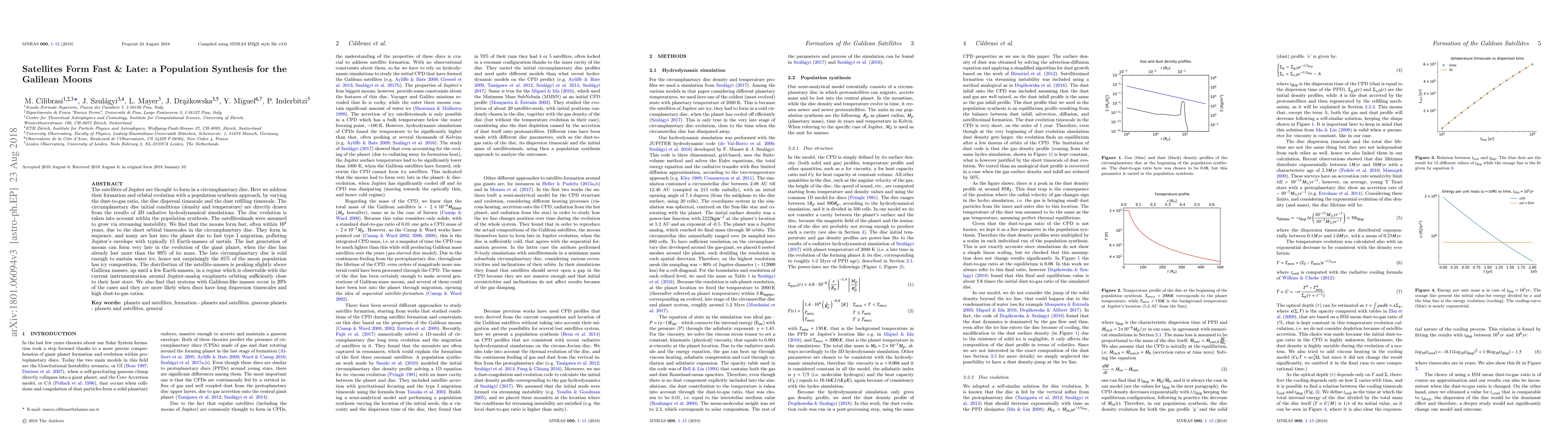 This study uses population synthesis to model the formation and evolution of Jupiter's Galilean moons, finding they form rapidly within 10,000 years due to short orbital periods in a circumplanetary disc. Most moons are lost to Jupiter, but the last generation forms late in the disc's evolution, often with icy compositions.