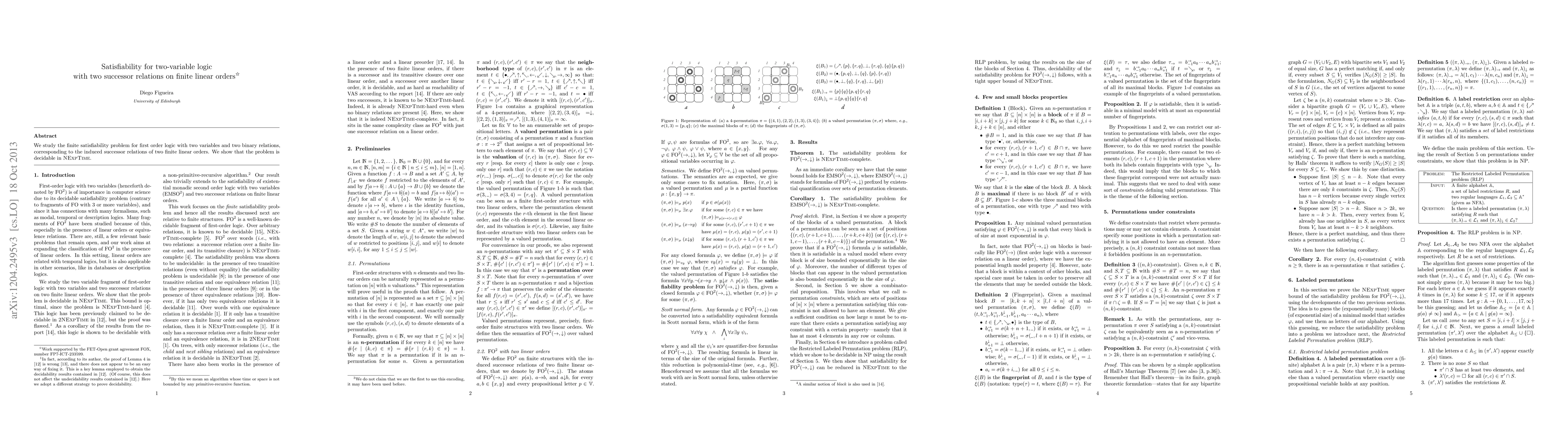 The paper investigates the satisfiability problem for a first-order logic with two variables and two successor relations derived from two finite linear orders, demonstrating that the problem can be solved in NEXPTIME. This establishes the decidability of the problem within this complexity class.