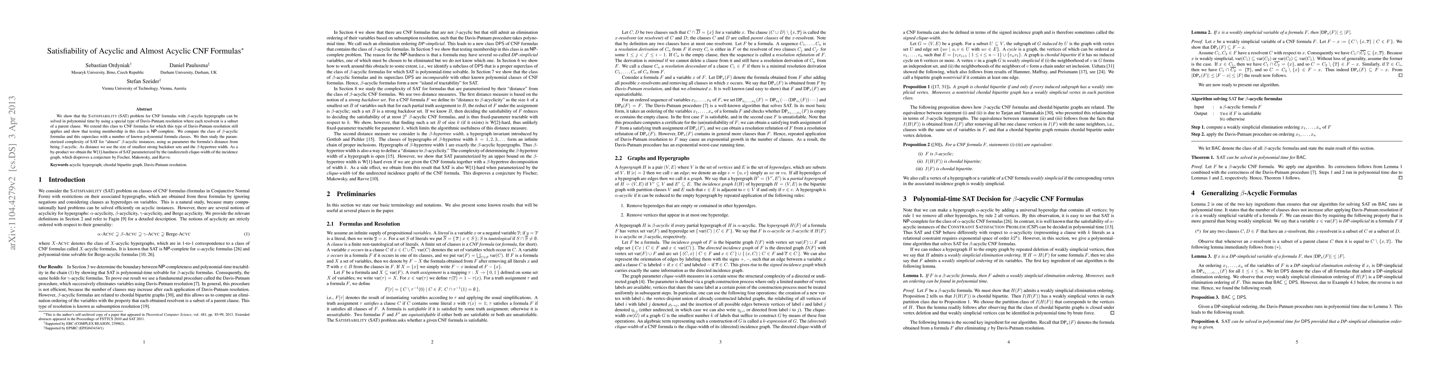 We show that the Satisfiability (SAT) problem for CNF formulas with {\beta}-acyclic hypergraphs can be solved in polynomial time by using a special type of Davis-Putnam resolution in which each resolvent is a subset of a parent clause. We extend this class to CNF formulas for which this type of Davis-Putnam resolution still applies and show that testing membership in this class is NP-complete. We compare the class of {\beta}-acyclic formulas and this superclass with a number of known polynomial formula classes. We then study the parameterized complexity of SAT for "almost" {\beta}-acyclic instances, using as parameter the formula's distance from being {\beta}-acyclic. As distance we use the size of a smallest strong backdoor set and the {\beta}-hypertree width. As a by-product we obtain the W[1]-hardness of SAT parameterized by the (undirected) clique-width of the incidence graph, which disproves a conjecture by Fischer, Makowsky, and Ravve.
