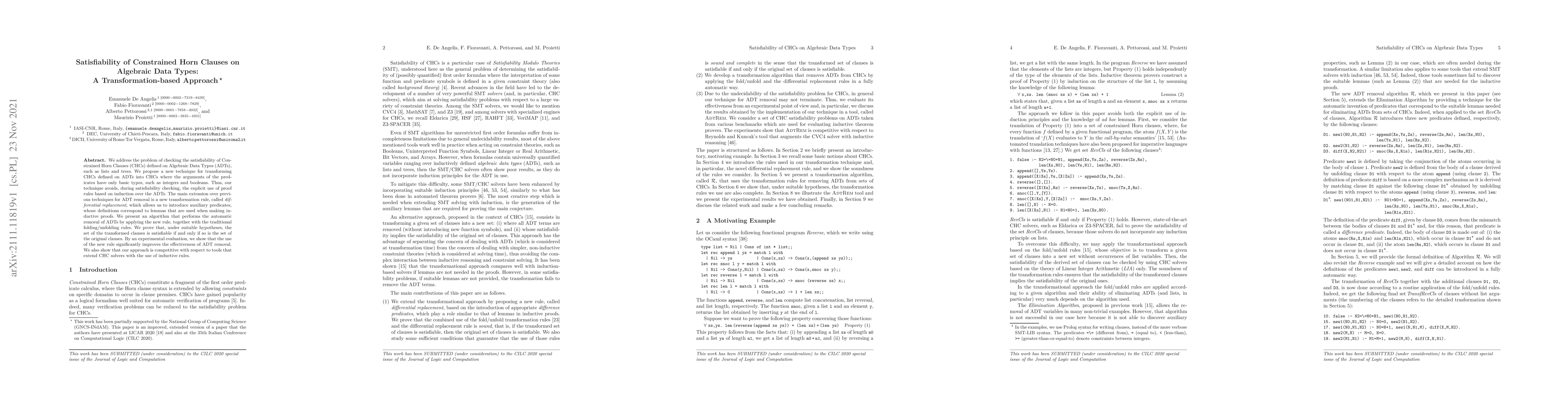 This paper proposes a transformation-based method to check the satisfiability of Constrained Horn Clauses defined on Algebraic Data Types, using a new differential replacement rule to avoid explicit induction. The technique improves the effectiveness of ADT removal and is competitive with existing inductive rule-based tools.