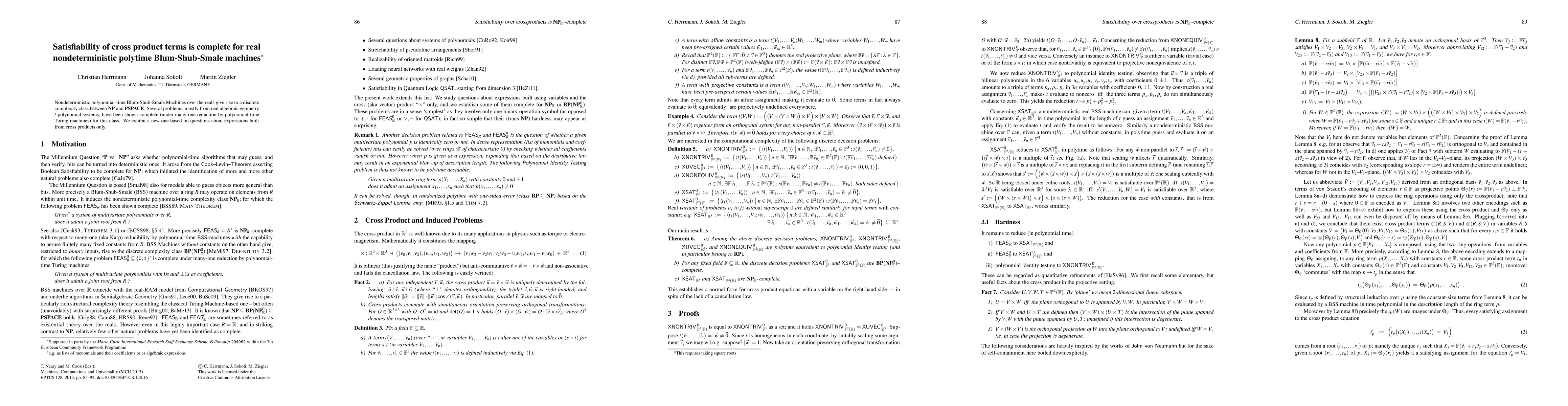 A new problem is shown to be complete for real nondeterministic polytime Blum-Shub-Smale machines, a complexity class between NP and PSPACE, involving expressions built from cross products.