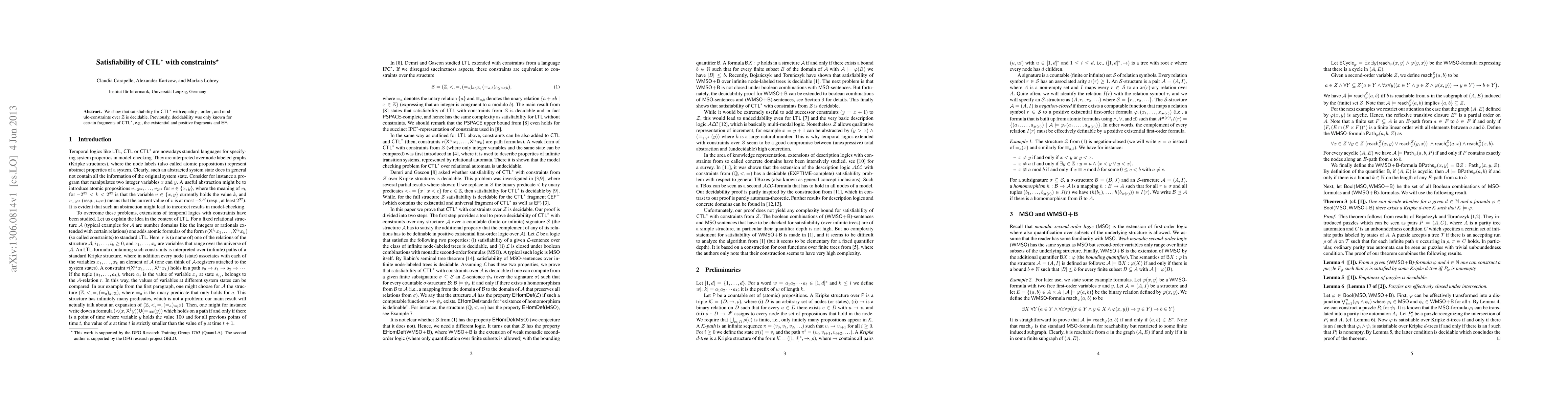 This paper demonstrates that satisfiability for CTL* with various constraints (equality, order, modulo) over the integers Z is decidable, extending previous decidability results to more comprehensive fragments of CTL*.
