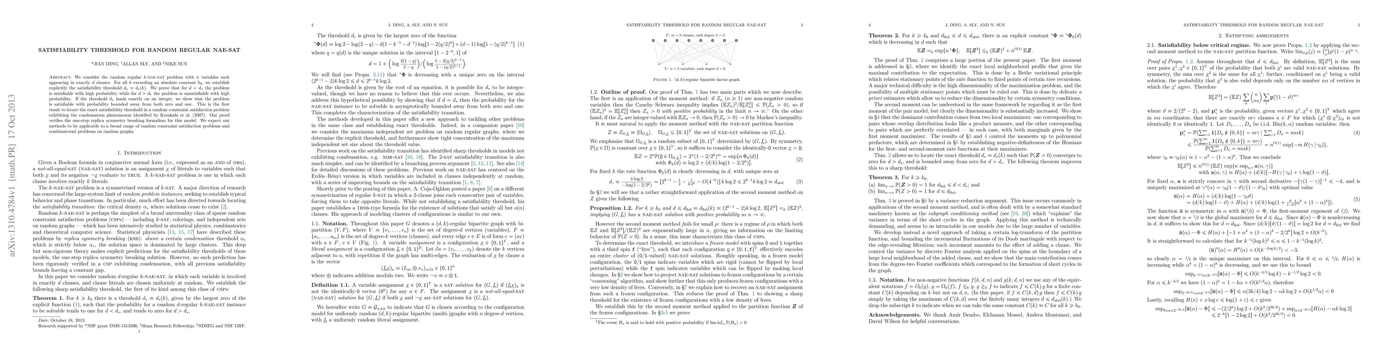 We consider the random regular $k$-NAE-SAT problem with $n$ variables each