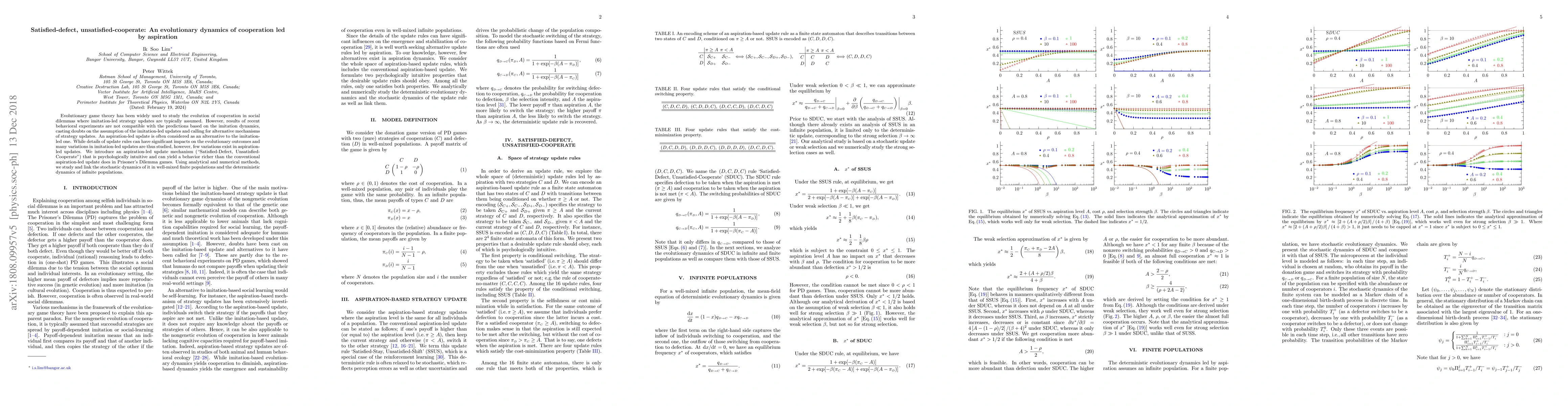 This paper introduces an aspiration-led update mechanism termed "Satisfied-Defect, Unsatisfied-Cooperate" to explain cooperation dynamics in social dilemmas, contrasting with traditional imitation-led strategies. It demonstrates that this new mechanism can yield richer cooperative behaviors than conventional aspiration-led updates in Prisoner's Dilemma games.