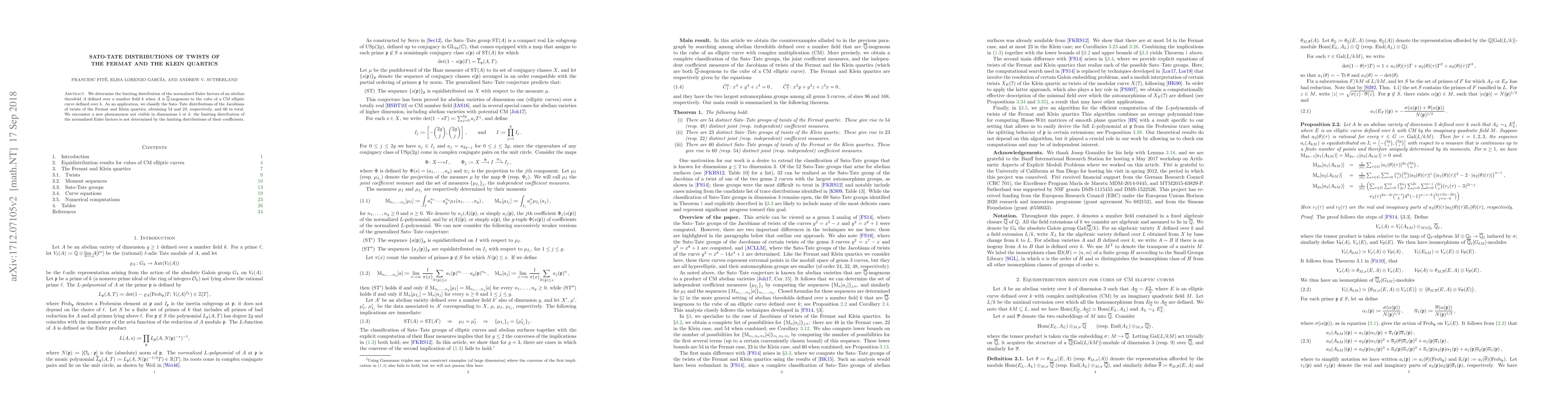 We determine the limiting distribution of the normalized Euler factors of an abelian threefold A defined over a number field k when A is geometrically isogenous to the cube of a CM elliptic curve defined over k. As an application, we classify the Sato-Tate distributions of the Jacobians of twists of the Fermat and Klein quartics, obtaining 54 and 23, respectively, and 60 in total. We encounter a new phenomenon not visible in dimensions 1 or 2: the limiting distribution of the normalized Euler factors is not determined by the limiting distributions of their coefficients.