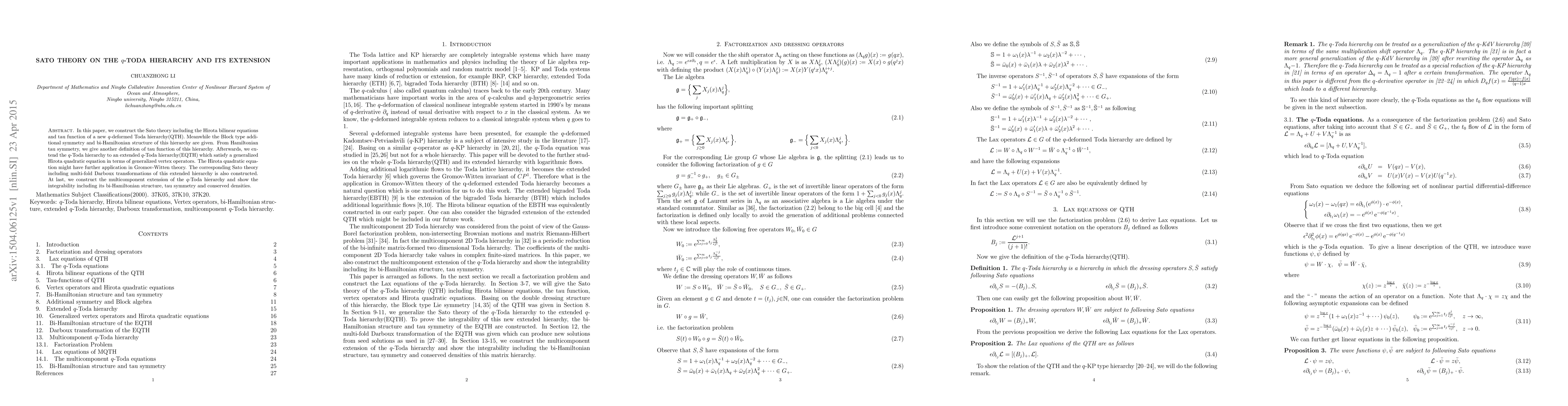 This paper constructs Sato theory for a new $q$-deformed Toda hierarchy, including Hirota bilinear equations and tau functions, and reveals its Block type symmetry and bi-Hamiltonian structure. It extends the $q$-Toda hierarchy to an extended form, introducing generalized vertex operators and multi-fold Darboux transformations, with potential applications in Gromov-Witten theory.
