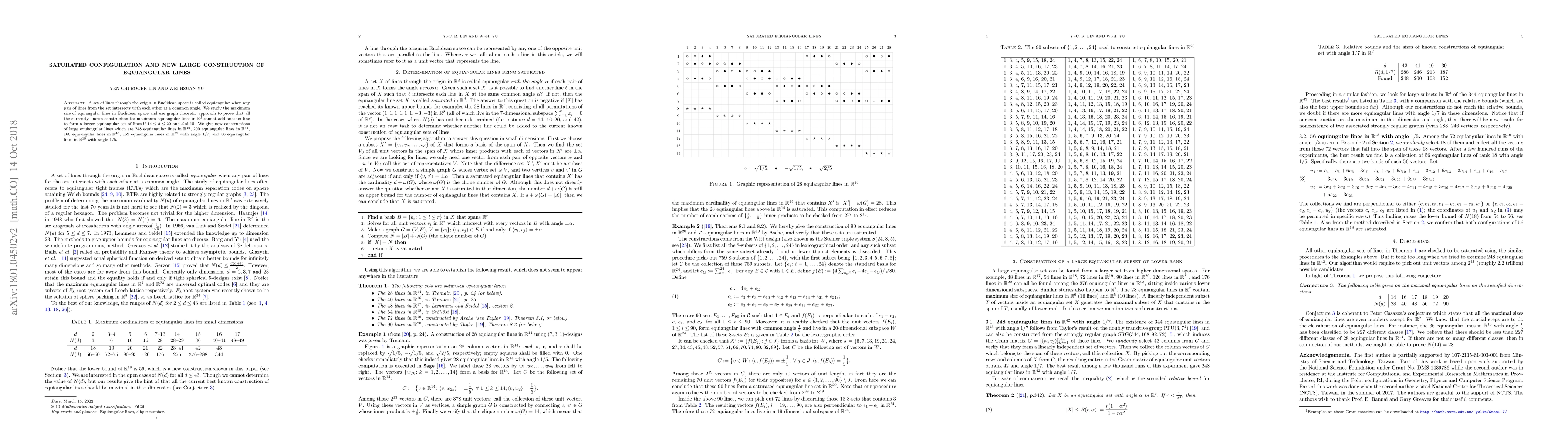 The paper uses a graph-theoretic approach to study the maximum size of equiangular lines in Euclidean space, employing an algorithm to determine saturation of equiangular line sets.