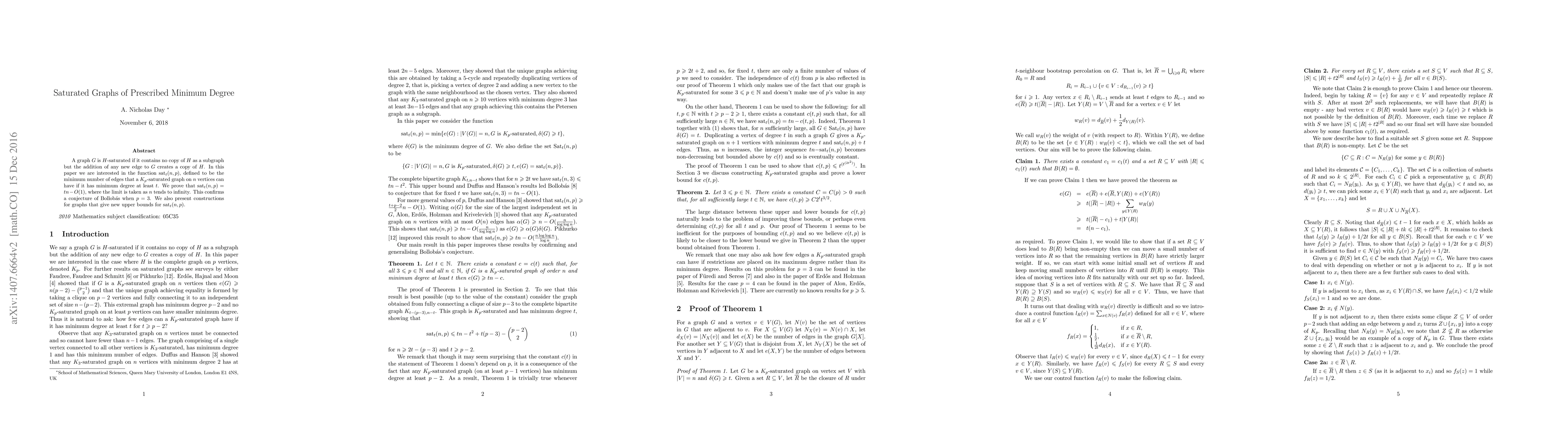 A graph $G$ is $H$-saturated if it contains no copy of $H$ as a subgraph but the addition of any new edge to $G$ creates a copy of $H$. In this paper we are interested in the function sat$_{t}(n,p)$, defined to be the minimum number of edges that a $K_{p}$-saturated graph on $n$ vertices can have if it has minimum degree at least $t$. We prove that sat$_{t}(n,p) = tn - O(1)$, where the limit is taken as $n$ tends to infinity. This confirms a conjecture of Bollob\'as when $p = 3$. We also present constructions for graphs that give new upper bounds for sat$_{t}(n,p)$ and discuss an analogous problem for saturated hypergraphs.