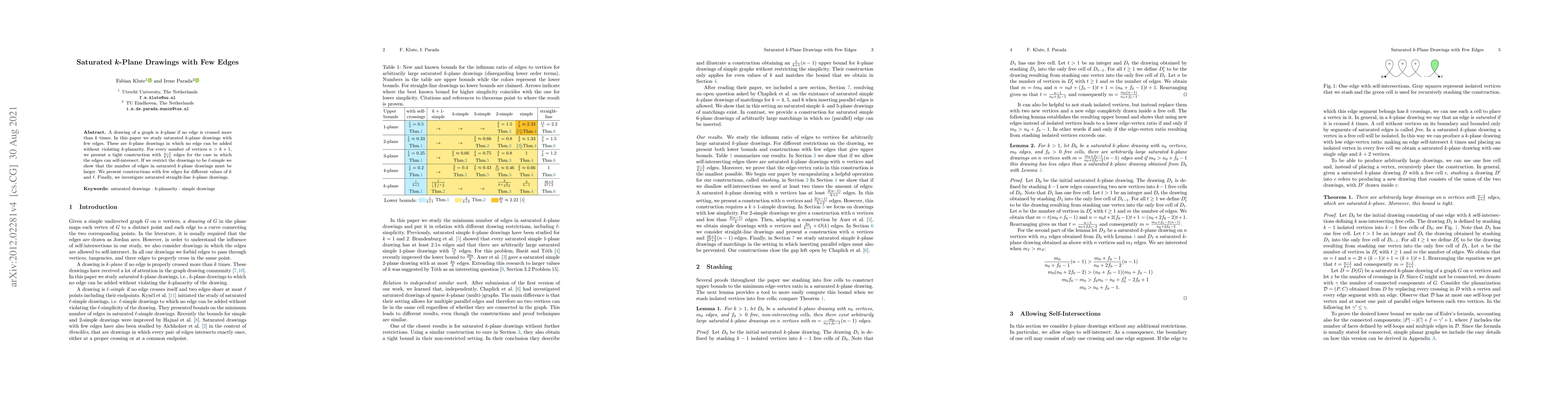 This paper explores saturated $k$-plane drawings of graphs where no edge is crossed more than $k$ times, presenting tight constructions for various edge counts based on the number of vertices and whether edges can self-intersect or must be $\ell$-simple. It concludes with constructions for specific $k$ and $\ell$ values.