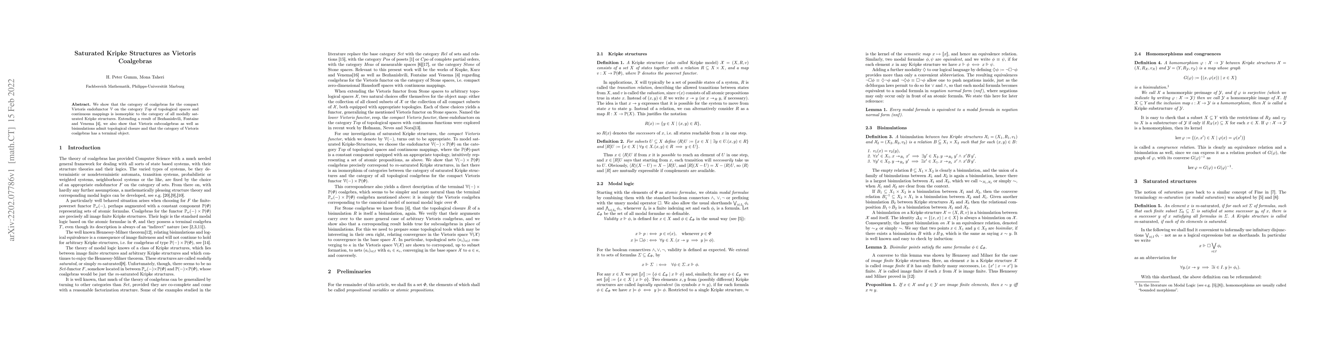 This paper demonstrates an isomorphism between the category of coalgebras for the compact Vietoris endofunctor on topological spaces and the category of modally saturated Kripke structures. It further extends previous results by showing that Vietoris subcoalgebras and bisimulations possess topological closure properties and that the category includes a terminal object.
